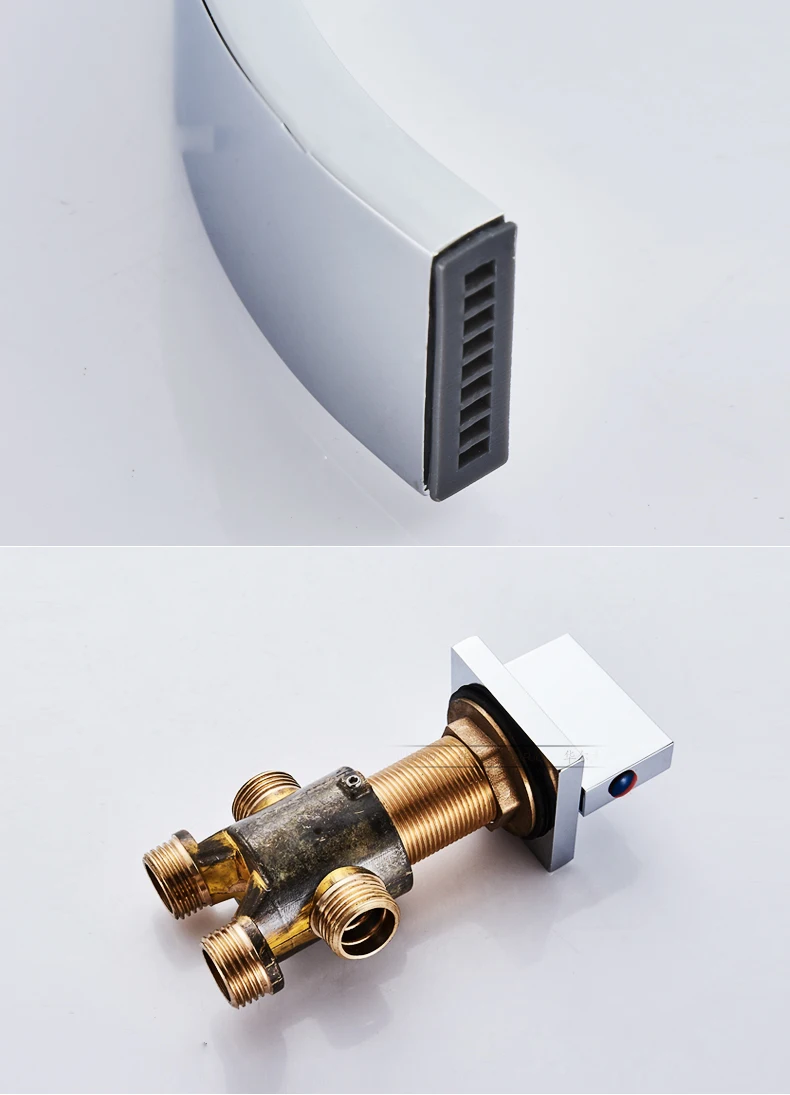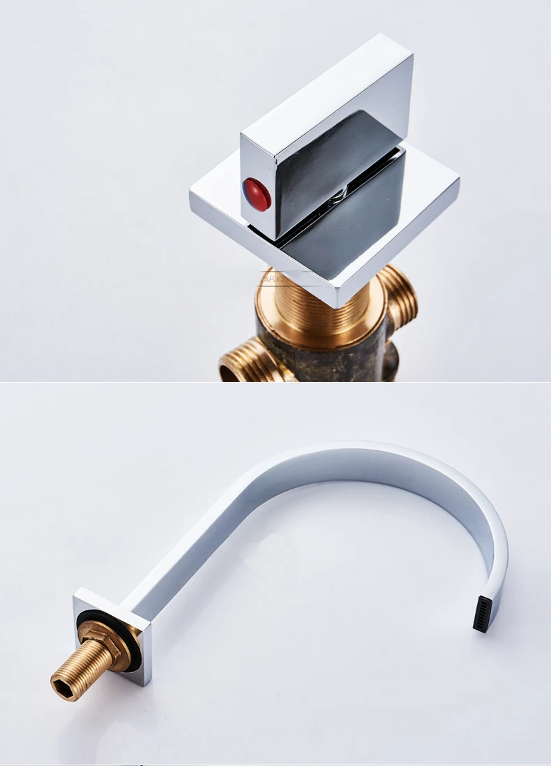 Mélangeurs de bassin cascade en chrome poli mitigeur carré salle de bain robinet de lavabo un trou en laiton 56.05 USD/pièce