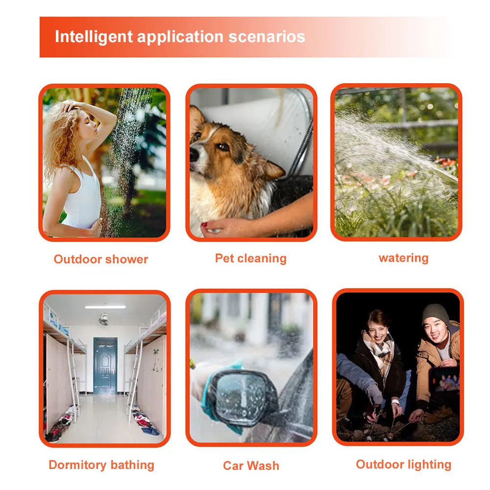 4.Double Interrupteurs : doté d’un interrupteurs séparés pour la douche et la lampe de camp portables, l’opération est droite, le téléchargement facile à changer entre les fonctions.