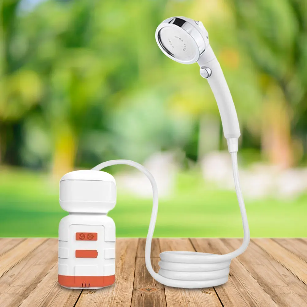 Caractéristiques : 1. Conception innovante 2 en 1 :Cette douche de camping en plein air combine une lumière extérieure avec une douche de camping portable, fournissant un éclairage et une expérience de douche rafraîchissante pendant vos aventures. 2. Batterie haute capacité :Équipé d’une batterie de 8 000 mAh, profitez d’une utilisation ininterrompue.La douche de camping électrique dure 2 à 2,5 heures et la lumière dépasse 22 heures, vous gardant préparé pour des séjours extérieurs prolongés. 3. Chargement pratique :Avec une interface de chargement de type C, la recharge est rapide et facile sans avoir besoin de câbles spéciaux, garantissant que votre pompe de douche électrique est toujours prête à fonctionner. 4. Doubles commutateurs :Doté d’interrupteurs séparés pour la douche de camping portable et la lampe, le fonctionnement est simple, ce qui facilite la commutation entre les fonctions. 5. Support de douche réglable :La douche de camping portative dispose d’un support polyvalent, permettant des réglages multi-angles pour répondre à divers besoins de douche. Remarque :