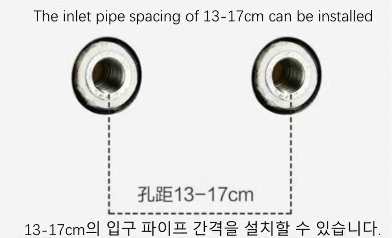 L’espacement d’installation de l’entrée d’eau chaude et froide sur le mur peut être ajusté entre 13-17 cm et cela peut être installé sans distinguer entre les tuyaux d’entrée d’eau chaude et froide.