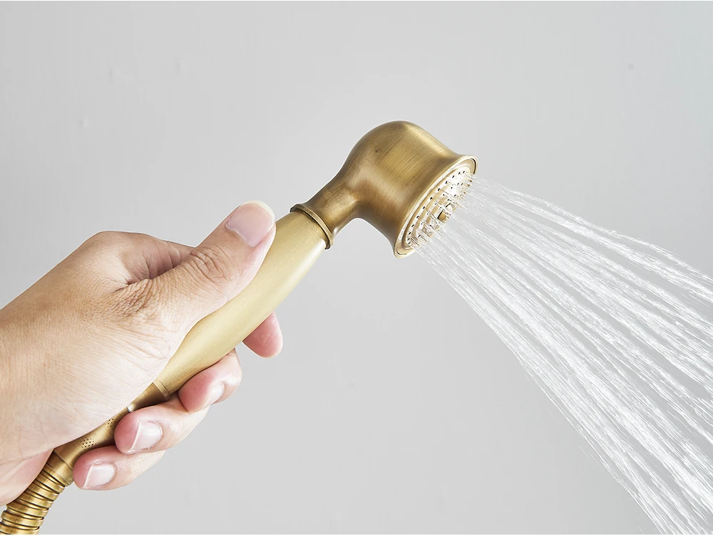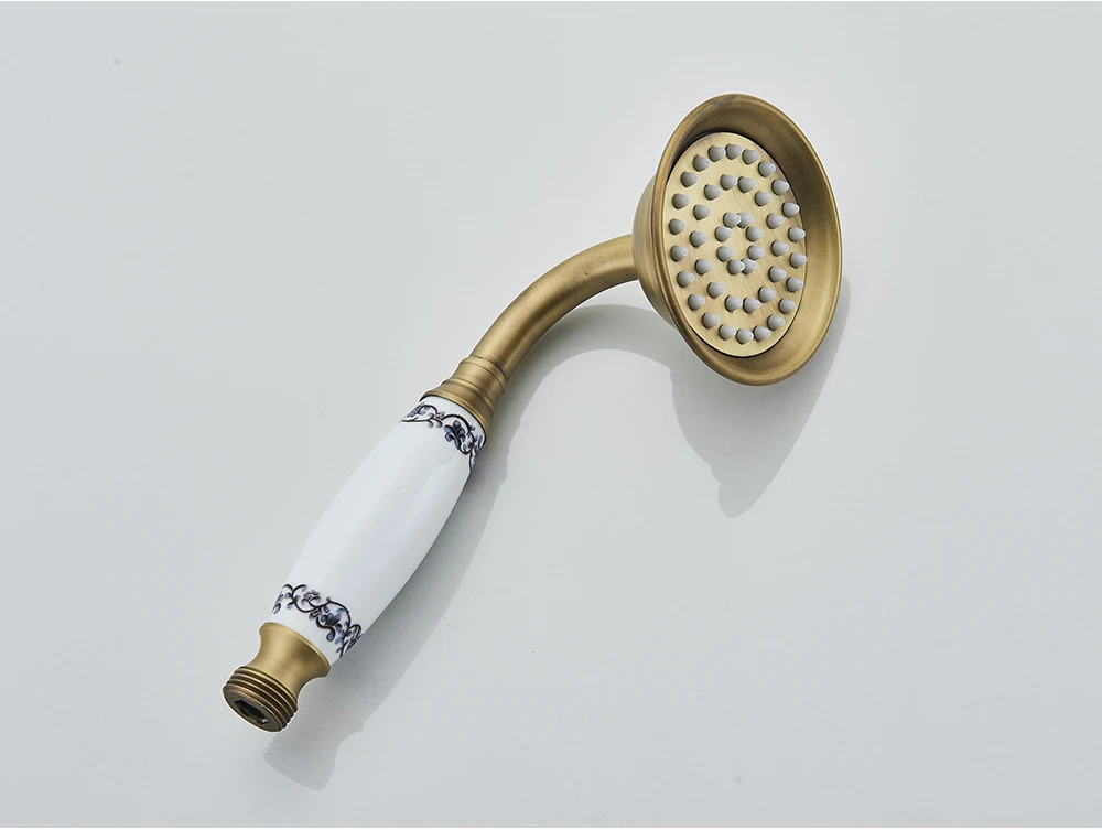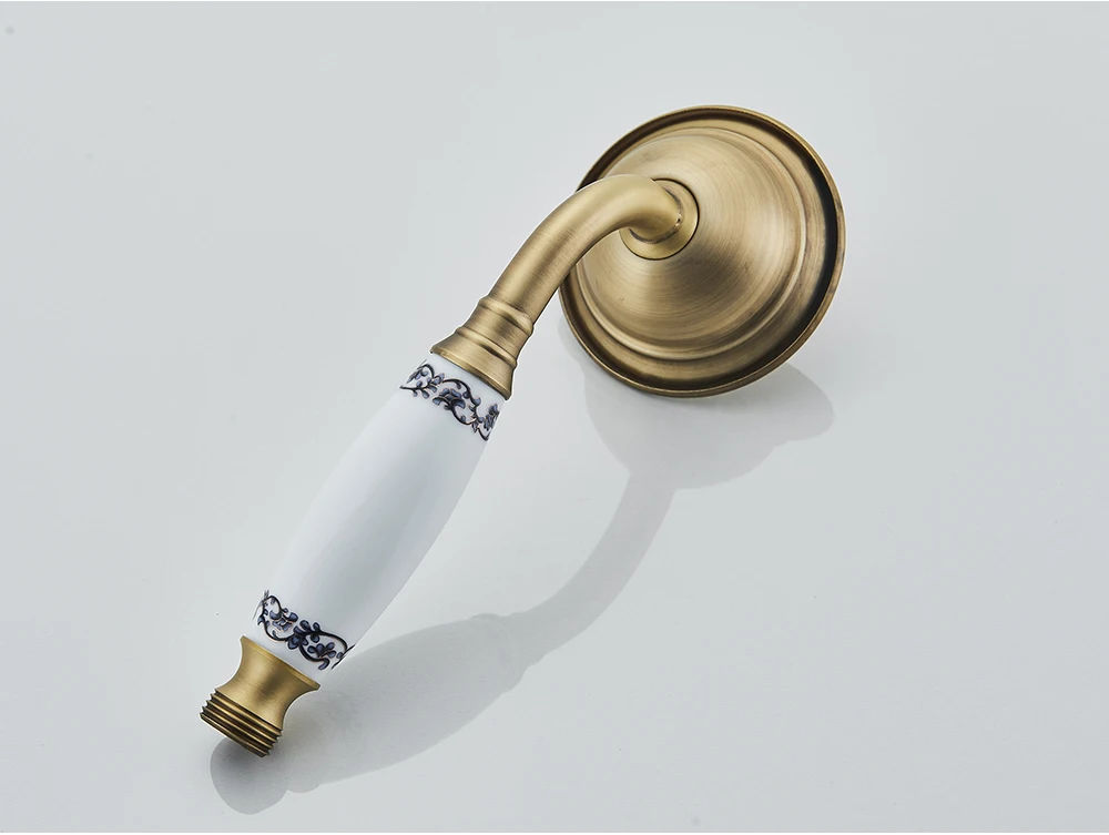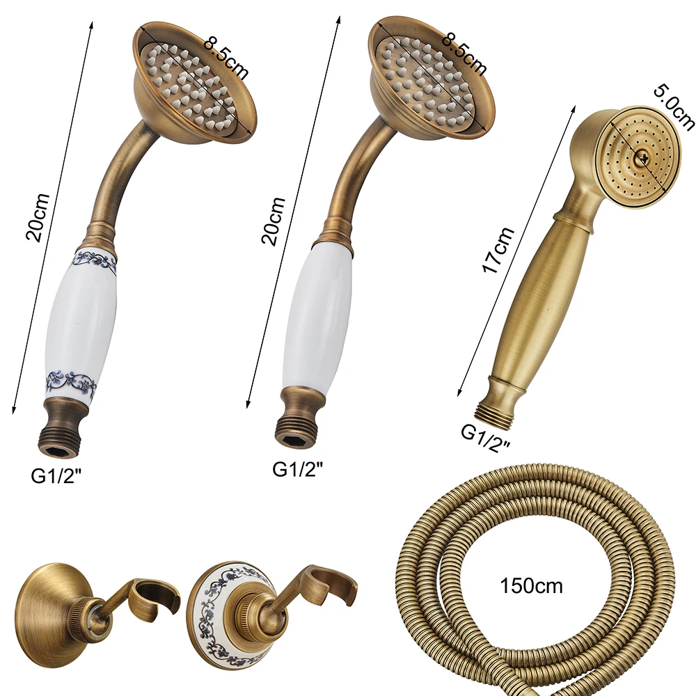 Douchette en laiton antique tête de poche en céramique support en laiton 150cm tuyau de douche accessoire de robinet pour salle de bain