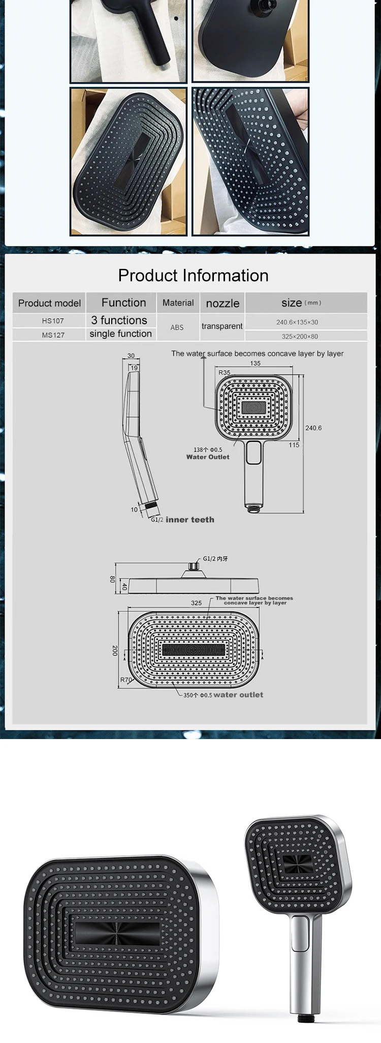 - Fonction de la pomme de douche: Pommes de douche pluie