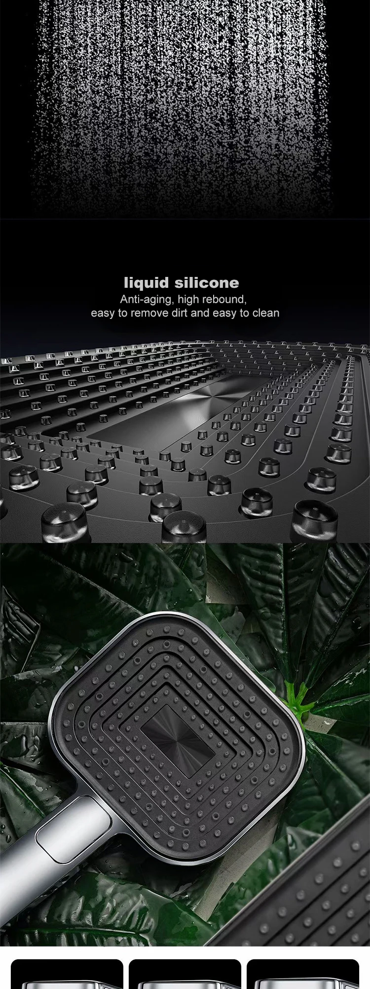 Pommeau de douche en silicone liquide gris pistolet, douche haut de gamme, pomme de douche à main pressurisée multifonction pour salle de bain