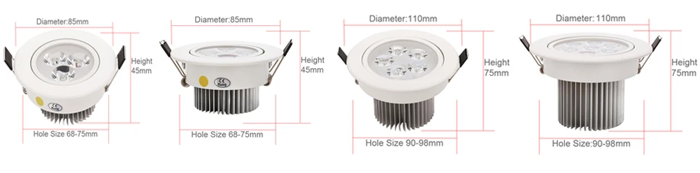 Dimmable Recessed led downlight 3W 4W 5W 7W dimming LED Spot light led ceiling lamp AC 110V 220V