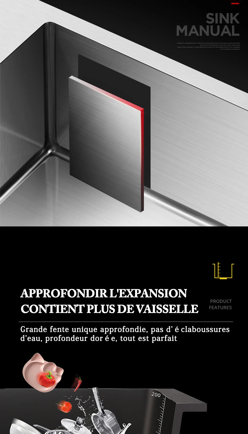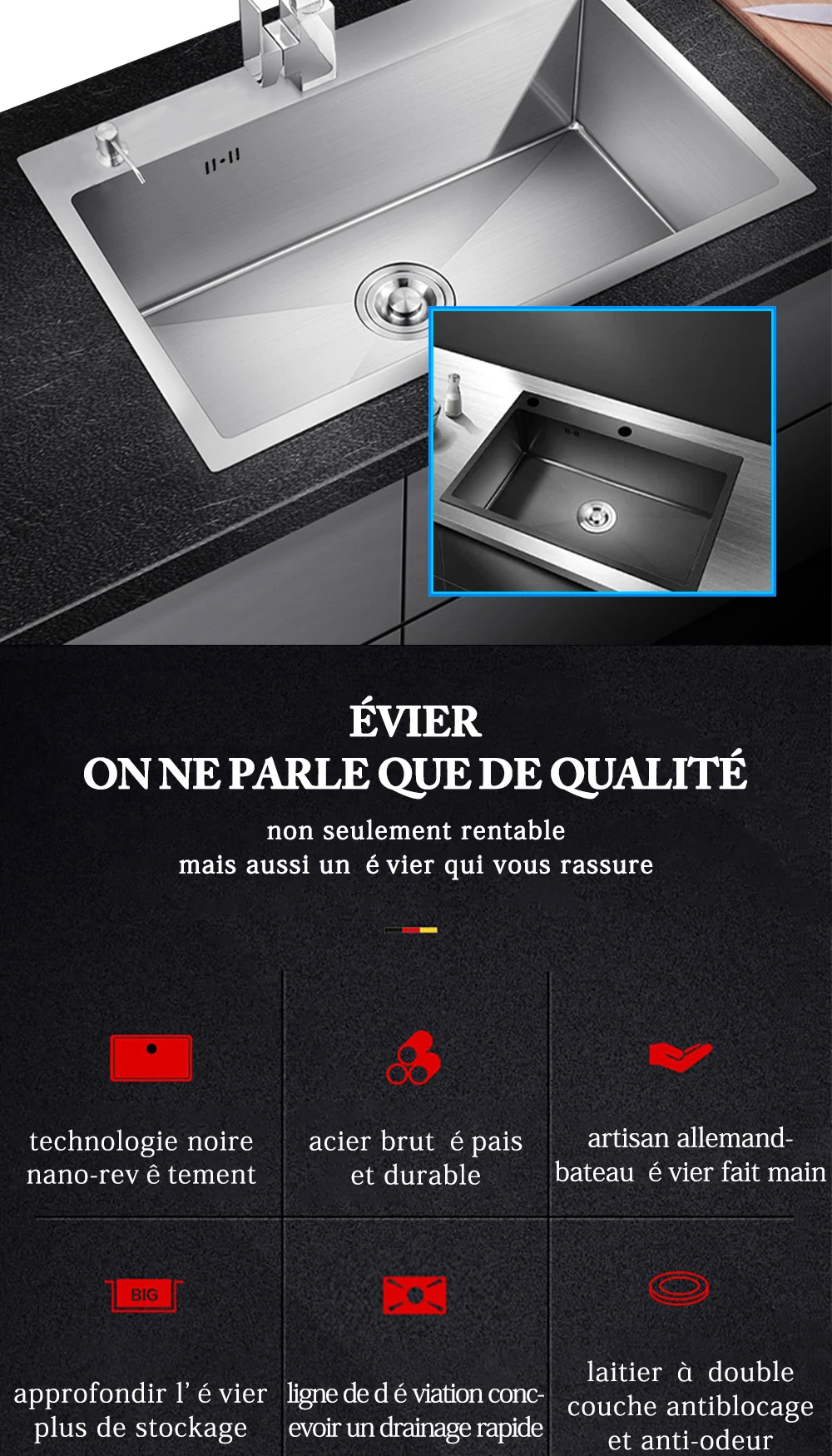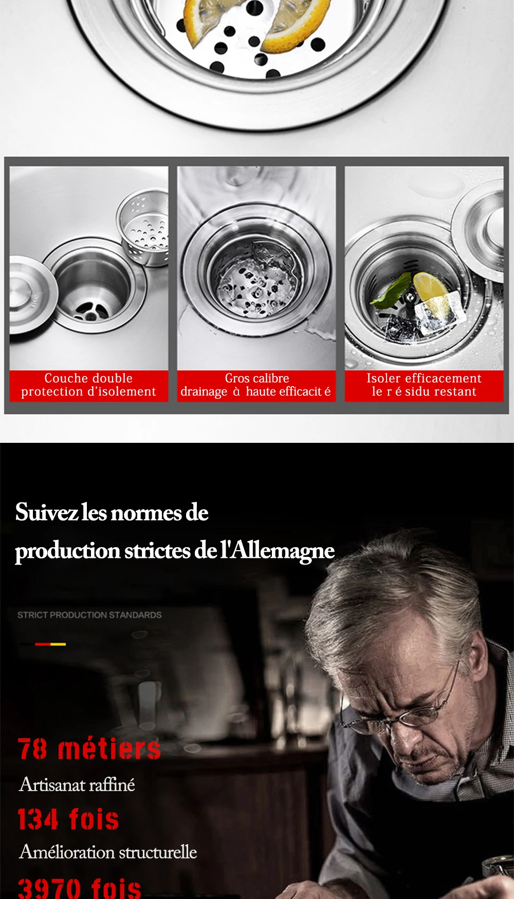 "Ce produit de fente d'évier de cuisine en acier inoxydable est vraiment fantastique ! La qualité de fabrication est excellent et il s'intègre parfaitement dans ma cuisine. J'apprécie particulièrement le panier de vidange intégré qui facilite grandement le nettoyage. Le seul bémol serait que le montage peut être un peu complexe au début, mais une fois installé, c'est un vrai plaisir d'utilisation au quotidien. Je le recommande vivement !"