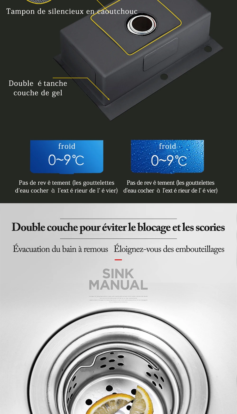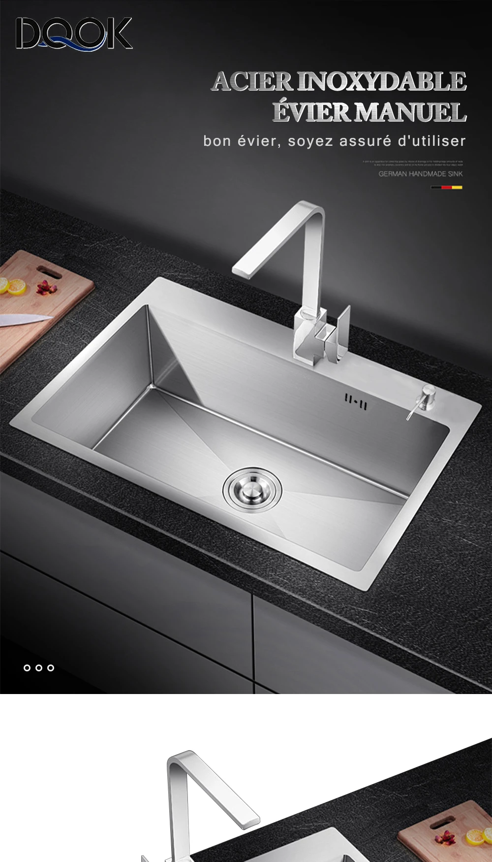 DQOK-Fente d’évier de cuisine en acier inoxydable, bassin à vaisselle, panier de vidange, pip rectangulaire