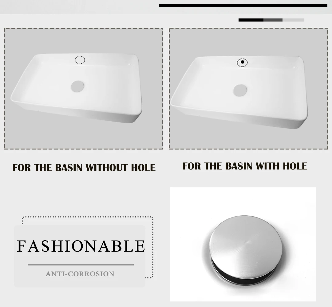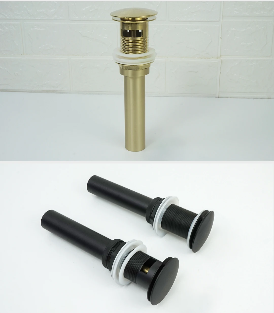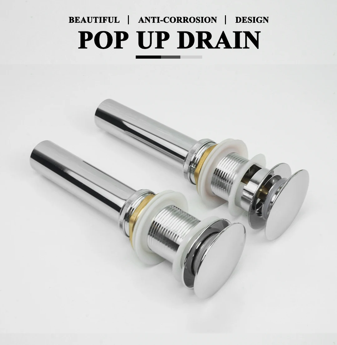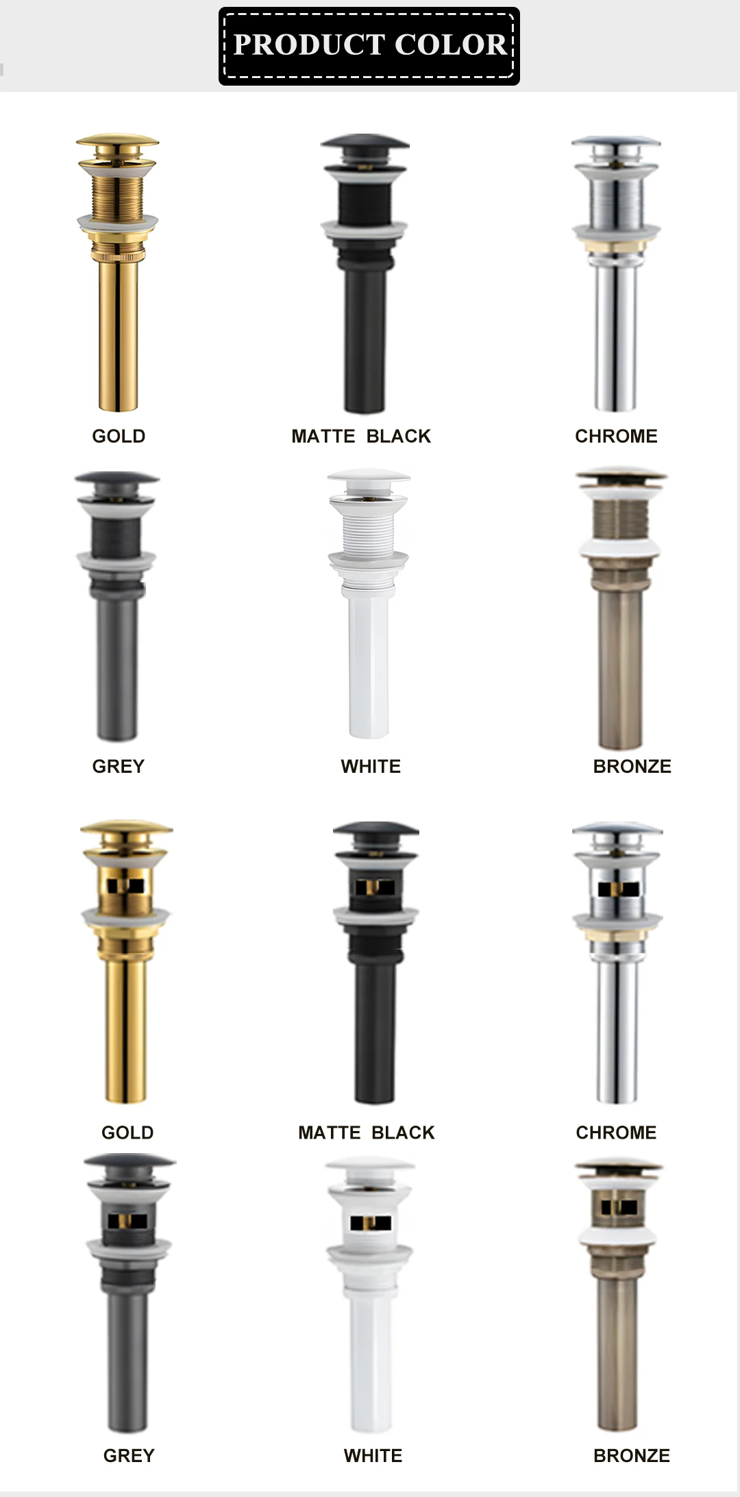 Drain en laiton noir/blanc/chromé/or/bronze/gris lavabo de salle de bain Push Down drain Pop-Up avec/sans trou de trop-plein conception
