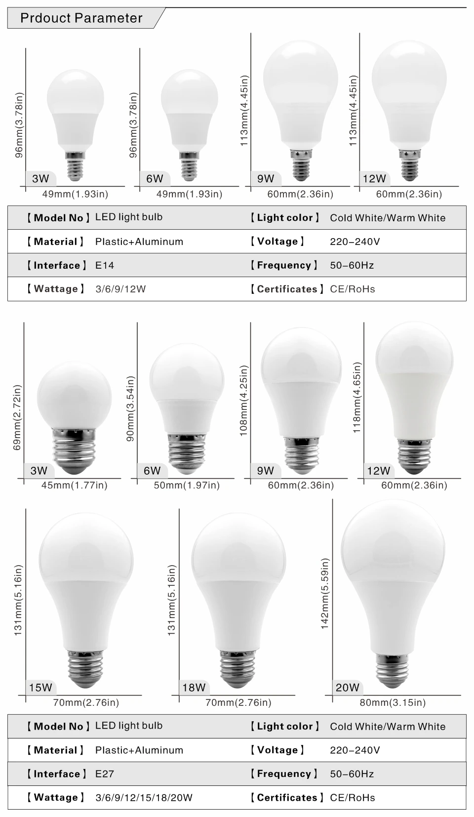 E27-3W/ 6W/ 7W/ 9W/ 12W/15W/ 18W/20W