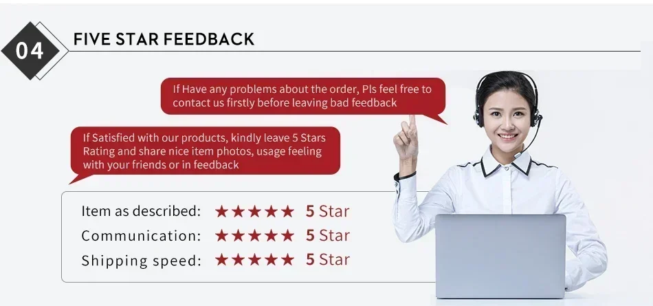 (1) Si vous sentez satisfait de nos produits, veuillez nous donnez un bon retour avec tous les 5 étoiles, votre soutien est le plus grand motivation pour nous.