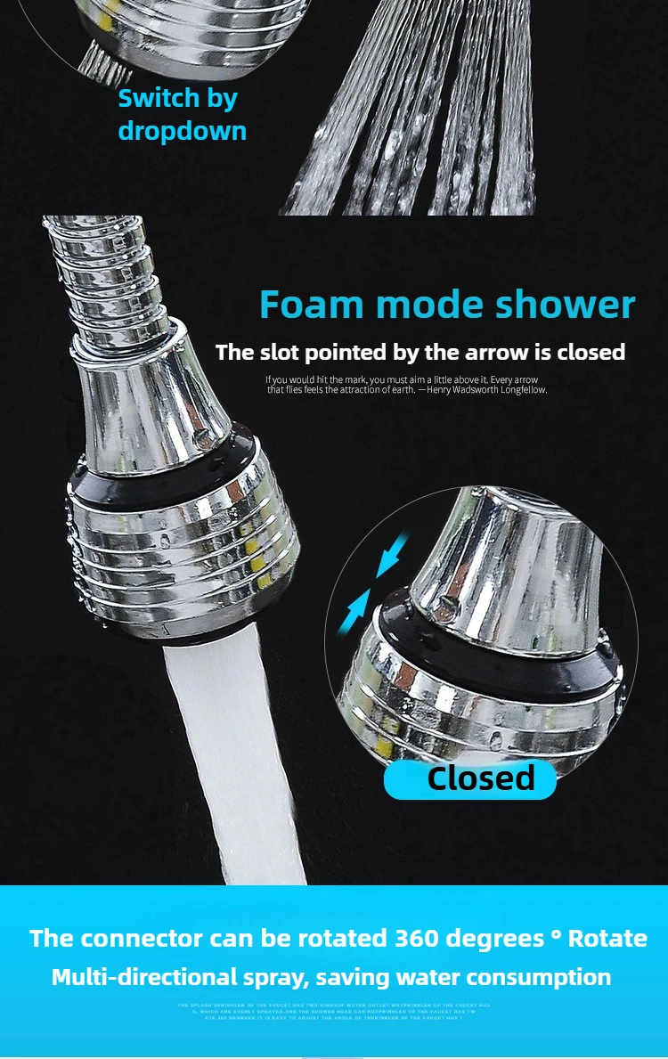 Augmentez la pression de l’eau : empêchez l’eau de s’écouler, et l’air est mélangé avec de l’eau est bon, l’eau est douce, améliore l’élan de l’eau, nettoyage plus pratique.