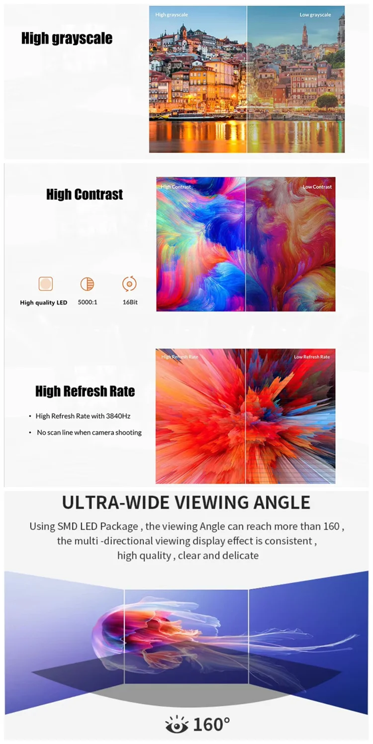 Remarque :Il n’inclut pas la carte de contrôle ni le processeur vidéo.Si vous avez besoin de lire des vidéos, des images et des textes, vous devez ajouter une carte de contrôle et un processeur vidéo.Vous devez ajouter des frais de carte de contrôle et de processeur vidéo.Veuillez contacter le service client avant de passer une commande.