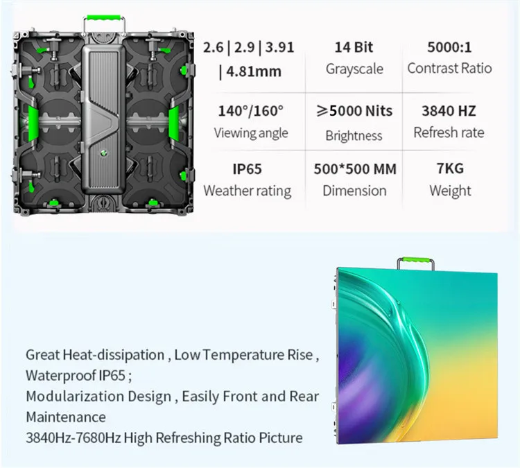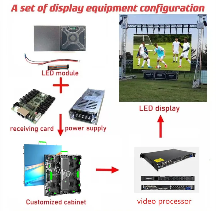 1 panneau extérieur P3.91LED 500*500mm (y compris 1 armoire 500*500mm, 4 module LED 250*250mm, 1 carte de réception Nova, 1 alimentation 100 ~ 240v, 1 cordon d’alimentation, 1 câble réseau)