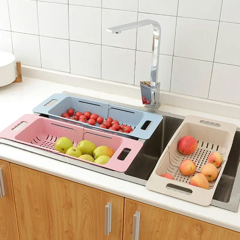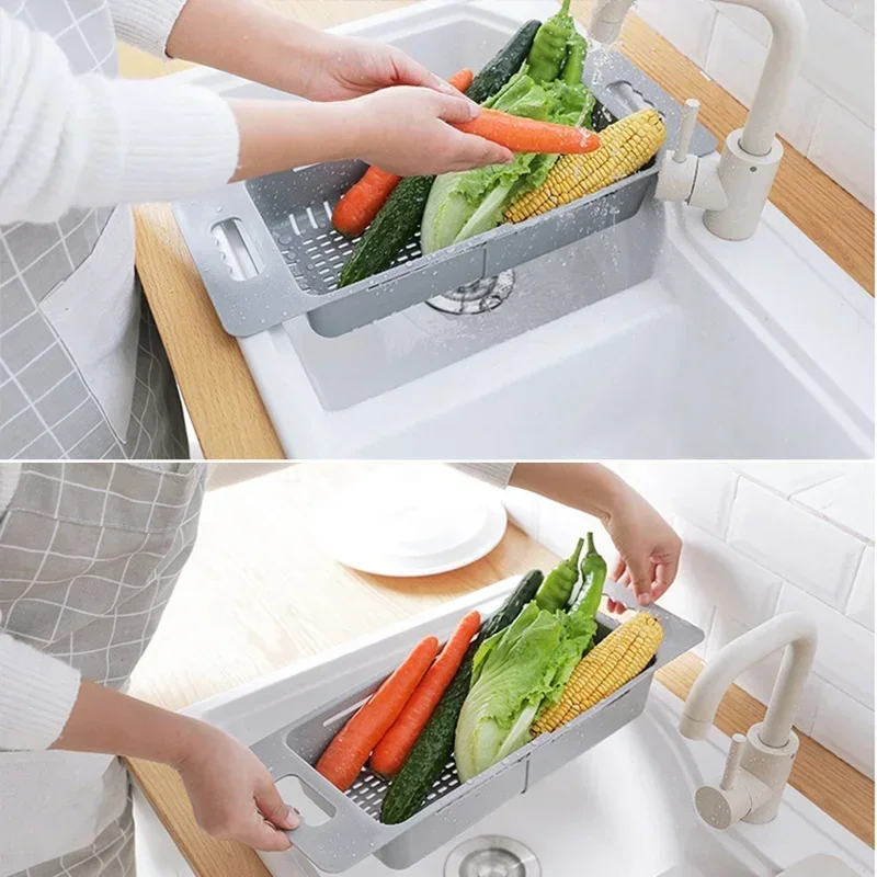 Égouttoir à vaisselle réglable, panier de vidange d’évier, lavage des légumes et des fruits, support de séchage en plastique, organisateur d’accessoires de cuisine