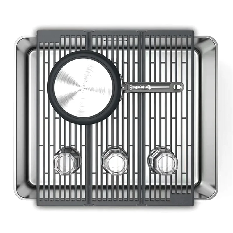 Caractéristique innovante anti-éclaboussures : conçu avec une structure unique anti-éclaboussures, ce égouttoir pliable éloigne les éclaboussures d’eau, garantissant que vos comptoirs et vos environs restent secs et propres.Parfait pour maintenir un environnement de cuisine soigné.