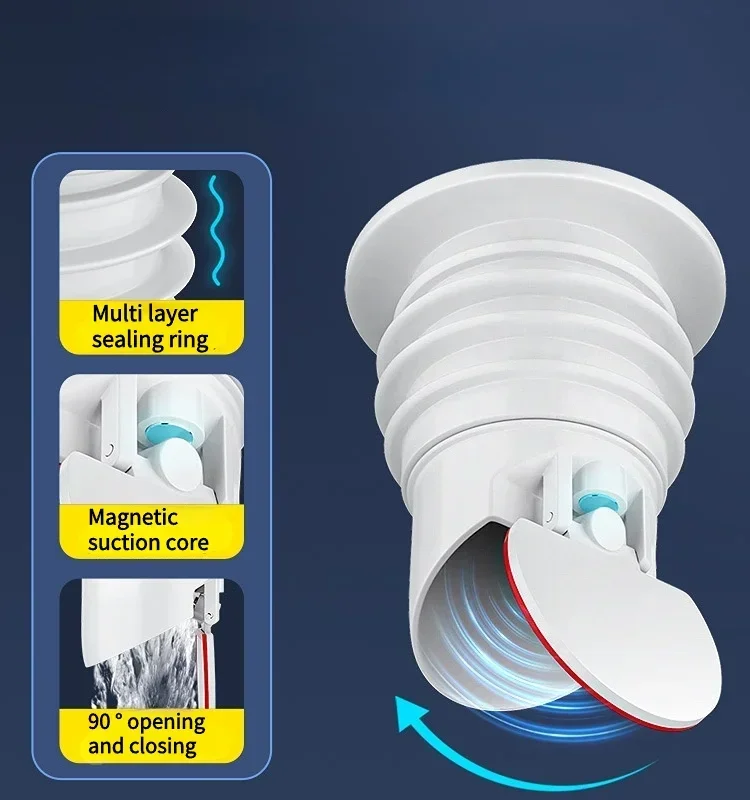 Les scellage et la prévention des odeurs multiples sont garanties, avec une grande ouverture et une fermeture à 90 degrés, une ouverture unidirectionnelle, une fermeture automatique et un drainage fluide. Il est également livré avec un joint magnétique pour isoler les moustiques et les insectes et une bague en silicone intégrée pour isoler les odeurs.