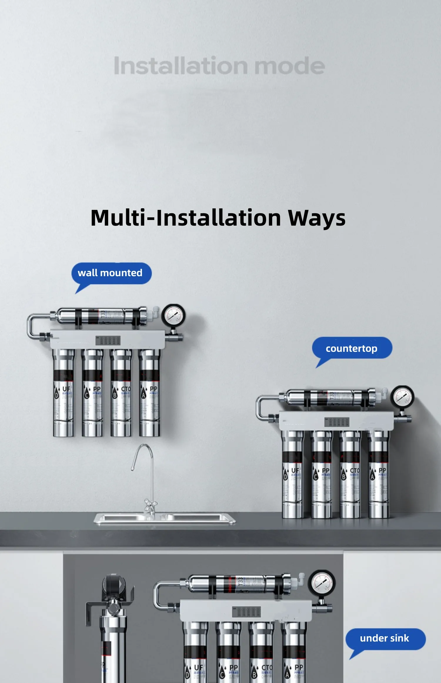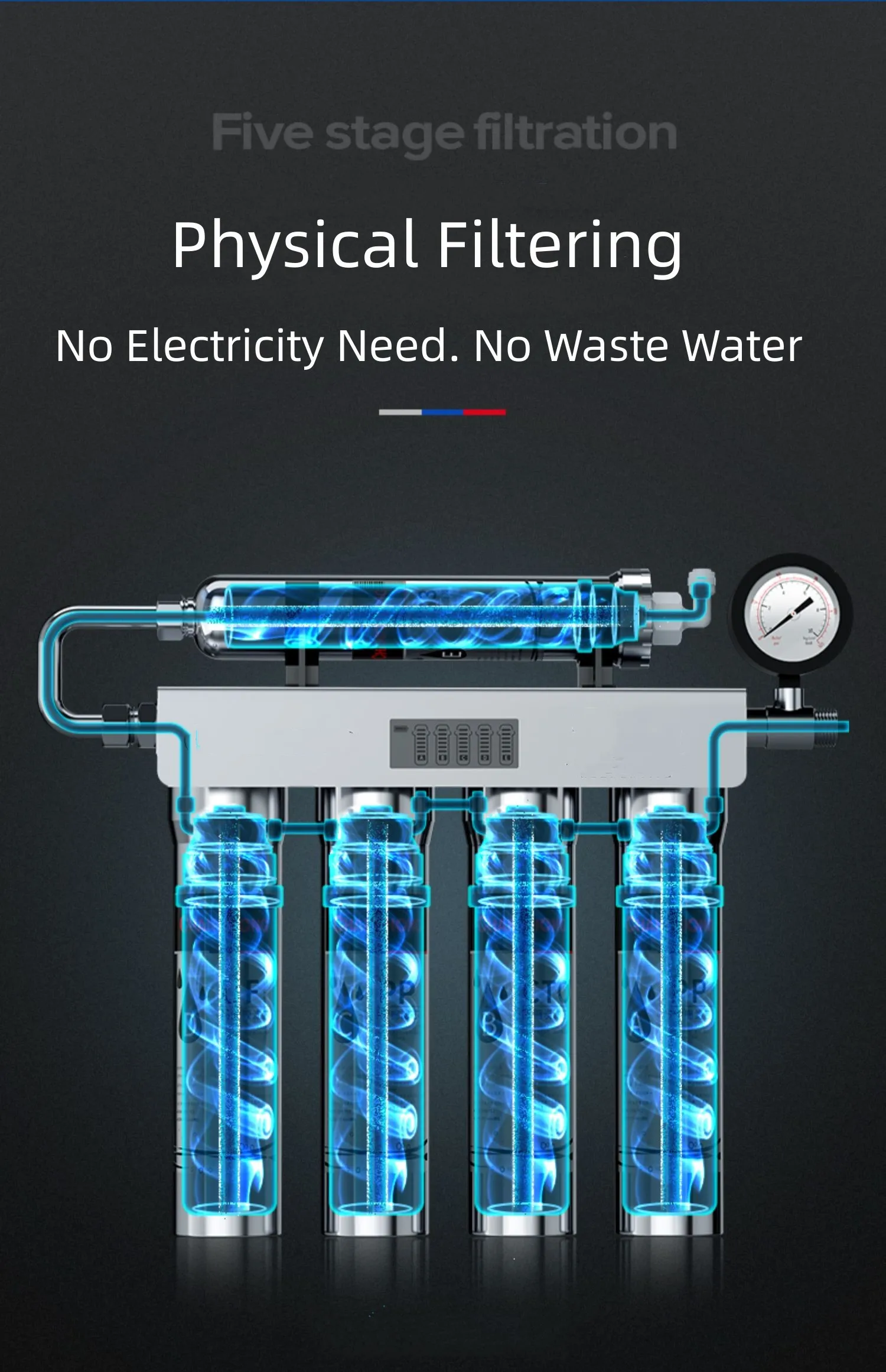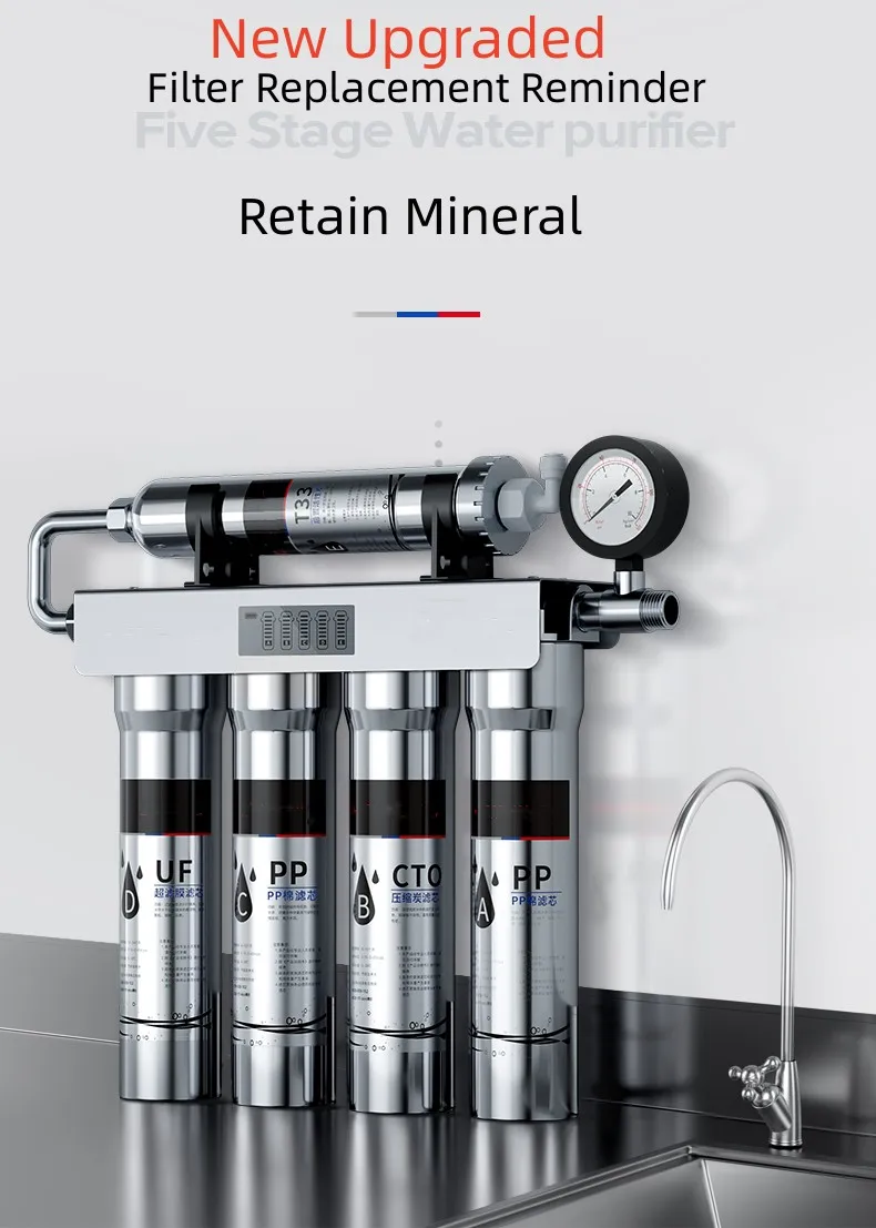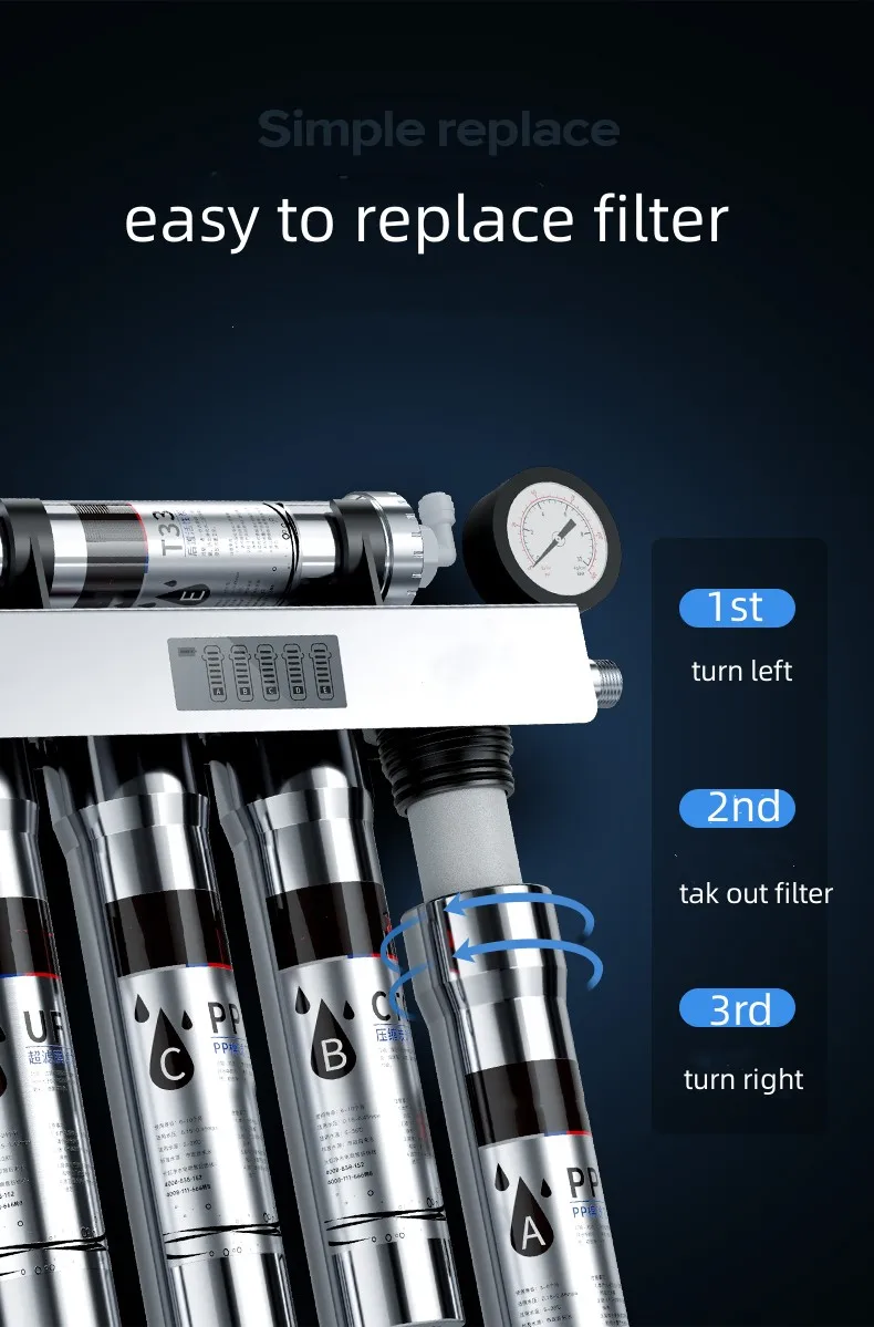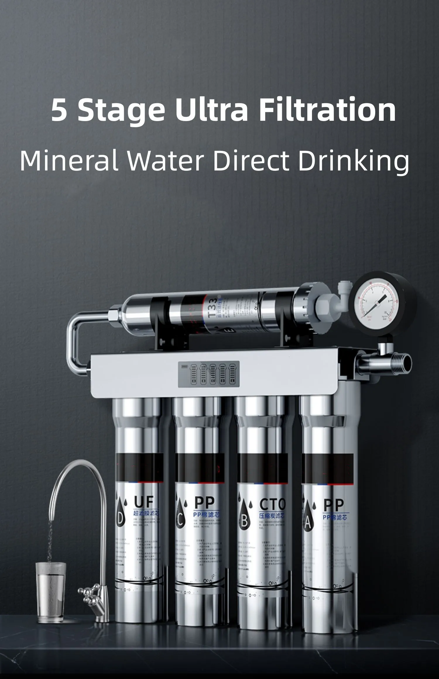 Filtre à eau en acier inoxydable, grand débit, 5 étapes, 90L/H, avec filtre à Membrane UF, pour usage domestique