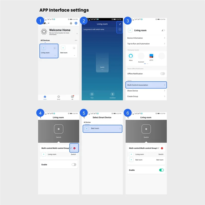 Une fois le réseau configuré avec succès, le téléphone mobile peut allumer/éteindre la lumière de n’importe où, sans avoir besoin du même réseau.