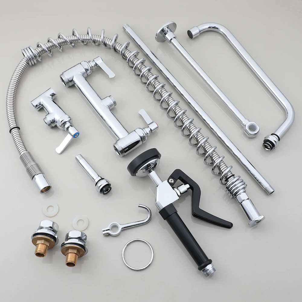 - Mise à jour de plus de 10 fois pour le choix des pièces de rechange du robinet: le bec pivotant de 12 pouces peut pivoter à 360 degrés. Le pulvérisateur de pré-rinçage haute pression peut nettoyer toutes les taches; le tube métallique flexible de 38 "peut être plié d’avant en arrière sur 100000 cycles.