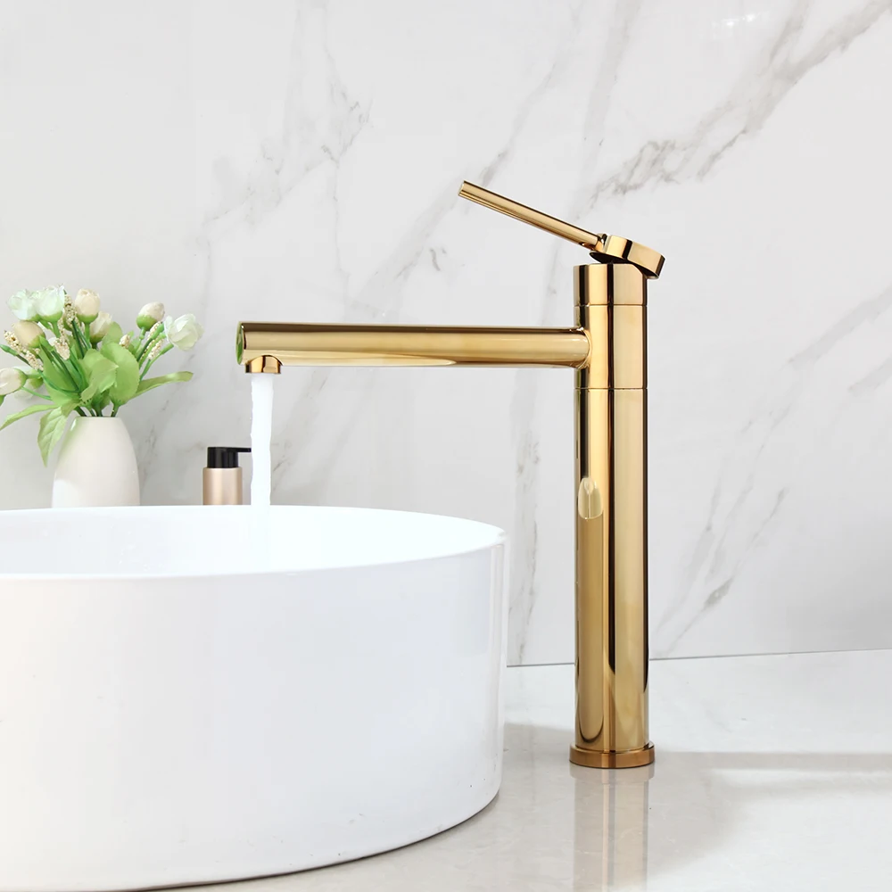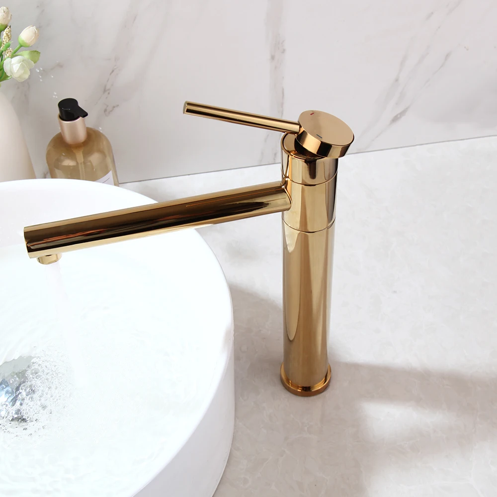 EllMAIDI-Robinet d’eau chaude et froide pour centre commercial, robinet de ark monté sur le pont, or brossé, qualité supérieure, résistant à 360 °