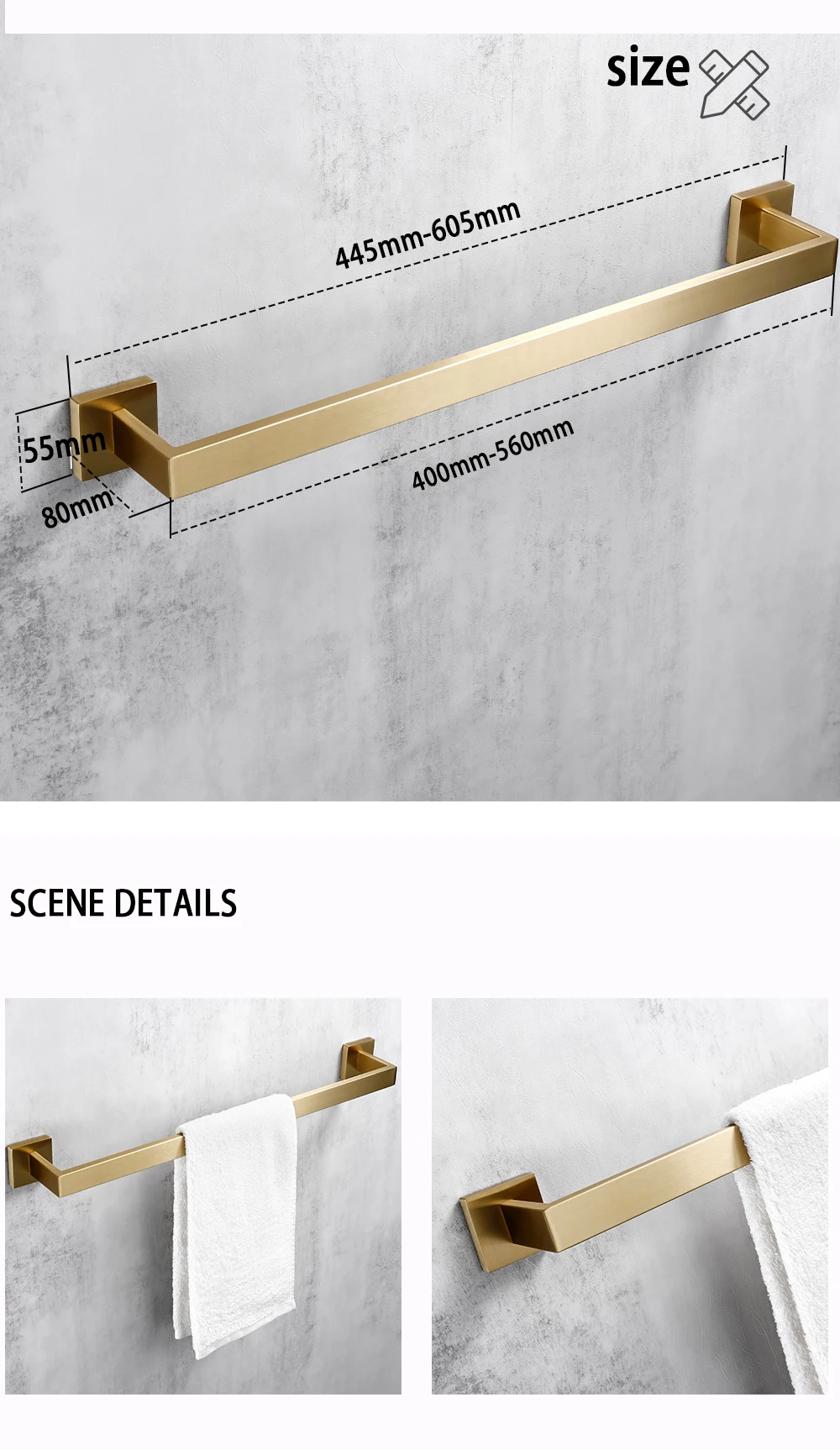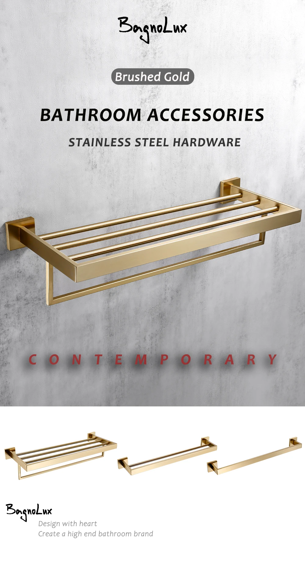 - Bath Hardware Set Finishing: Stainless steel