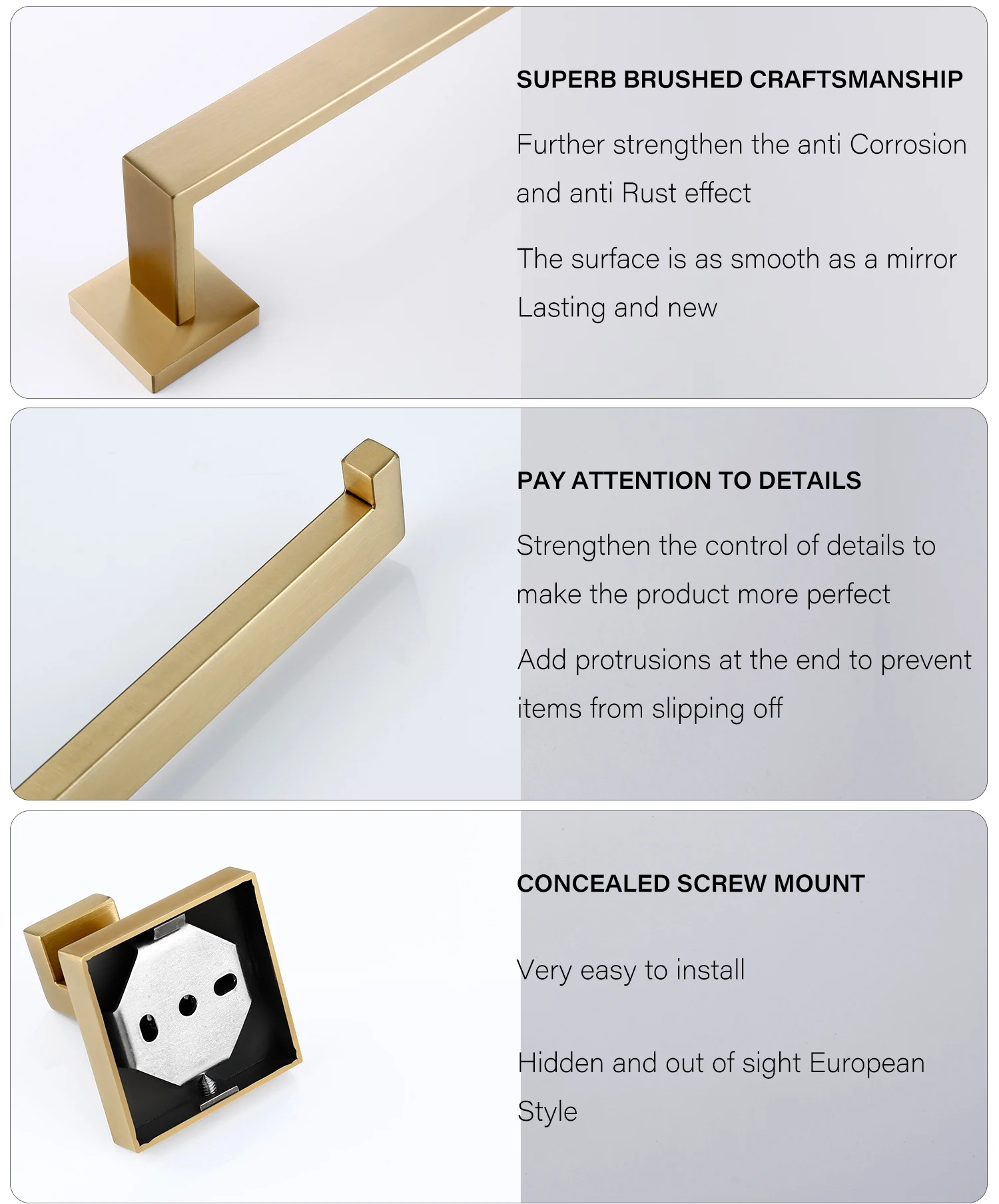 - Bath Hardware Set Finishing: Stainless steel