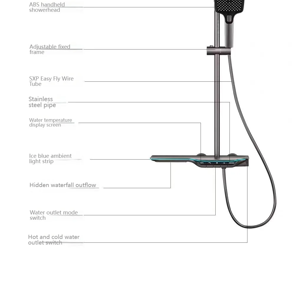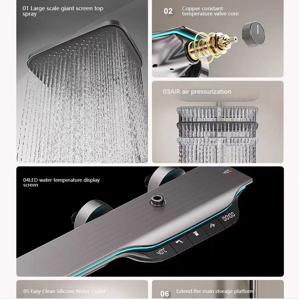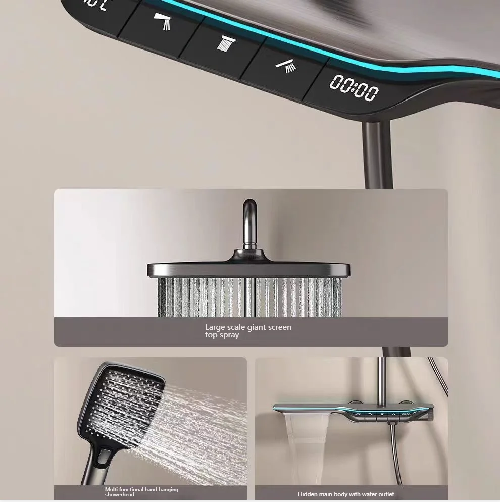 Ensemble de douche à affichage numérique, salle de bains, boutons de Piano, système de douche, Booster multifonction, buse de doucheEnsemble de douche à affichage numérique, salle de bains, boutons de Piano, système de douche, Booster multifonction, buse de douche