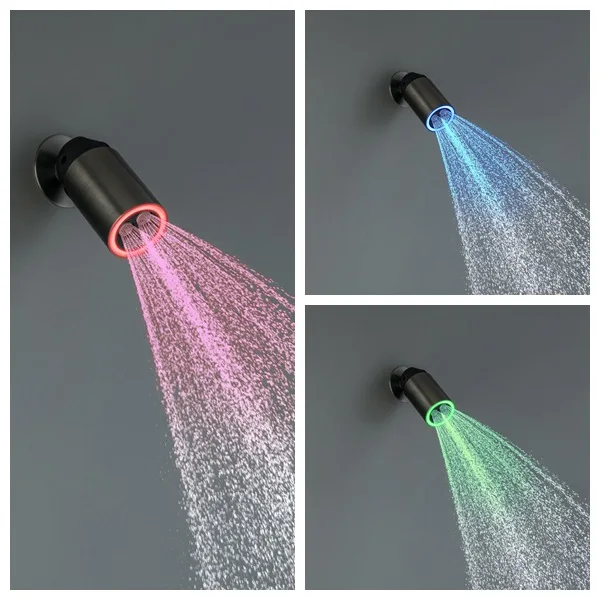 Ensemble de douche à projecteur LED, ensemble de robinets de douche muraux noirs, en laiton massif brossé doré, mitigeur de bain et de douche en laiton