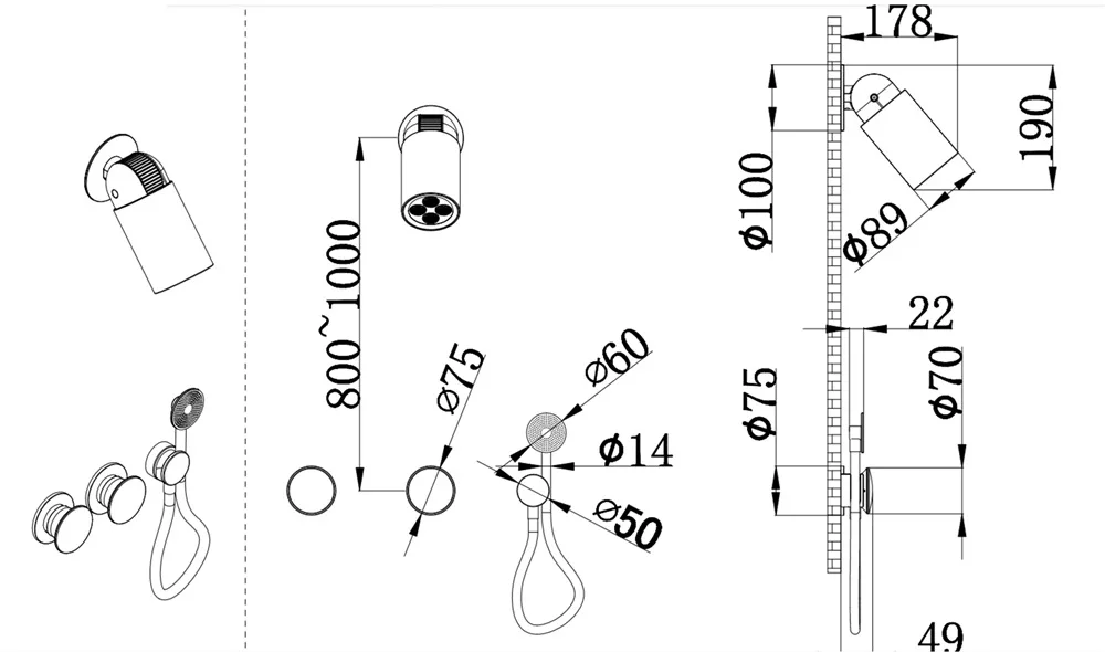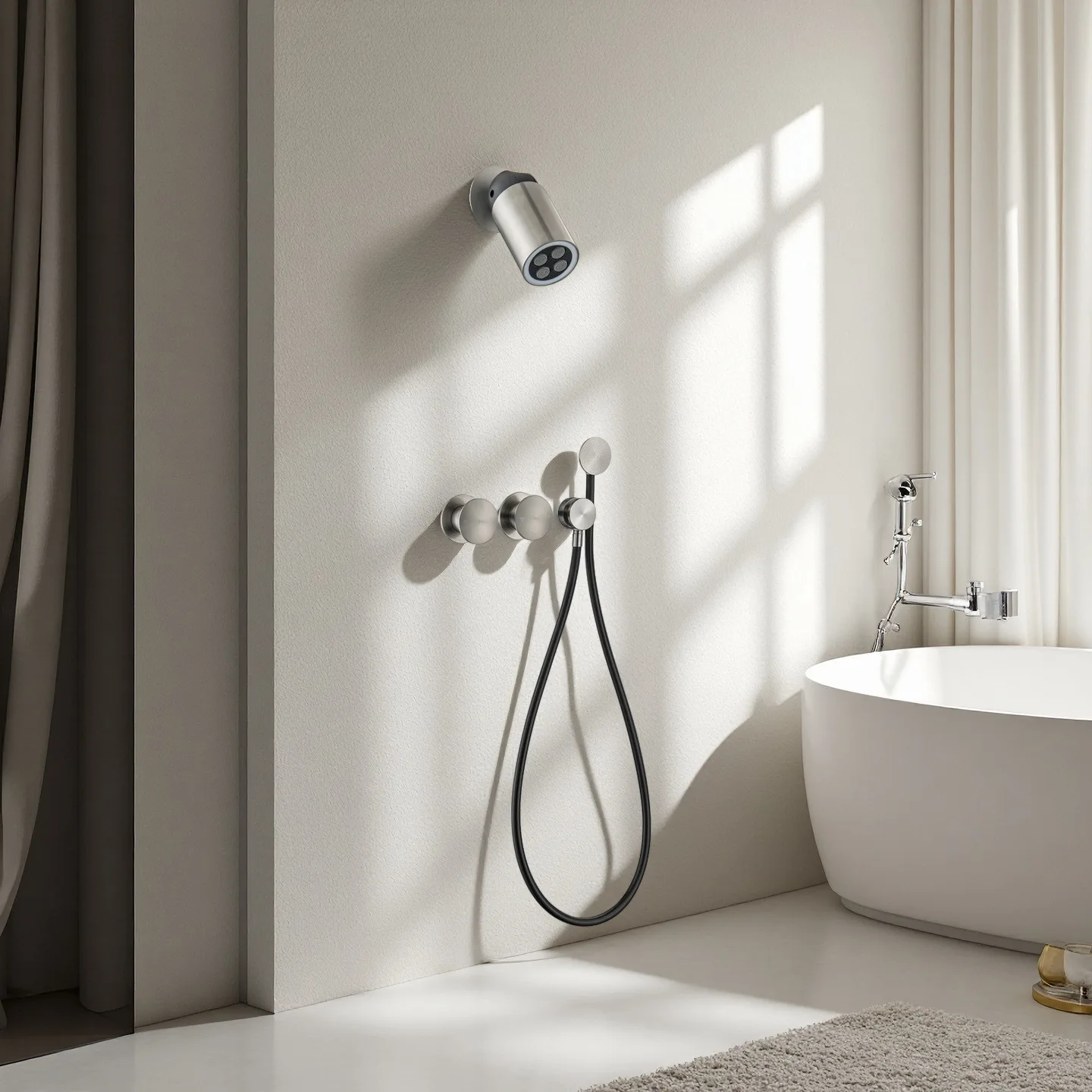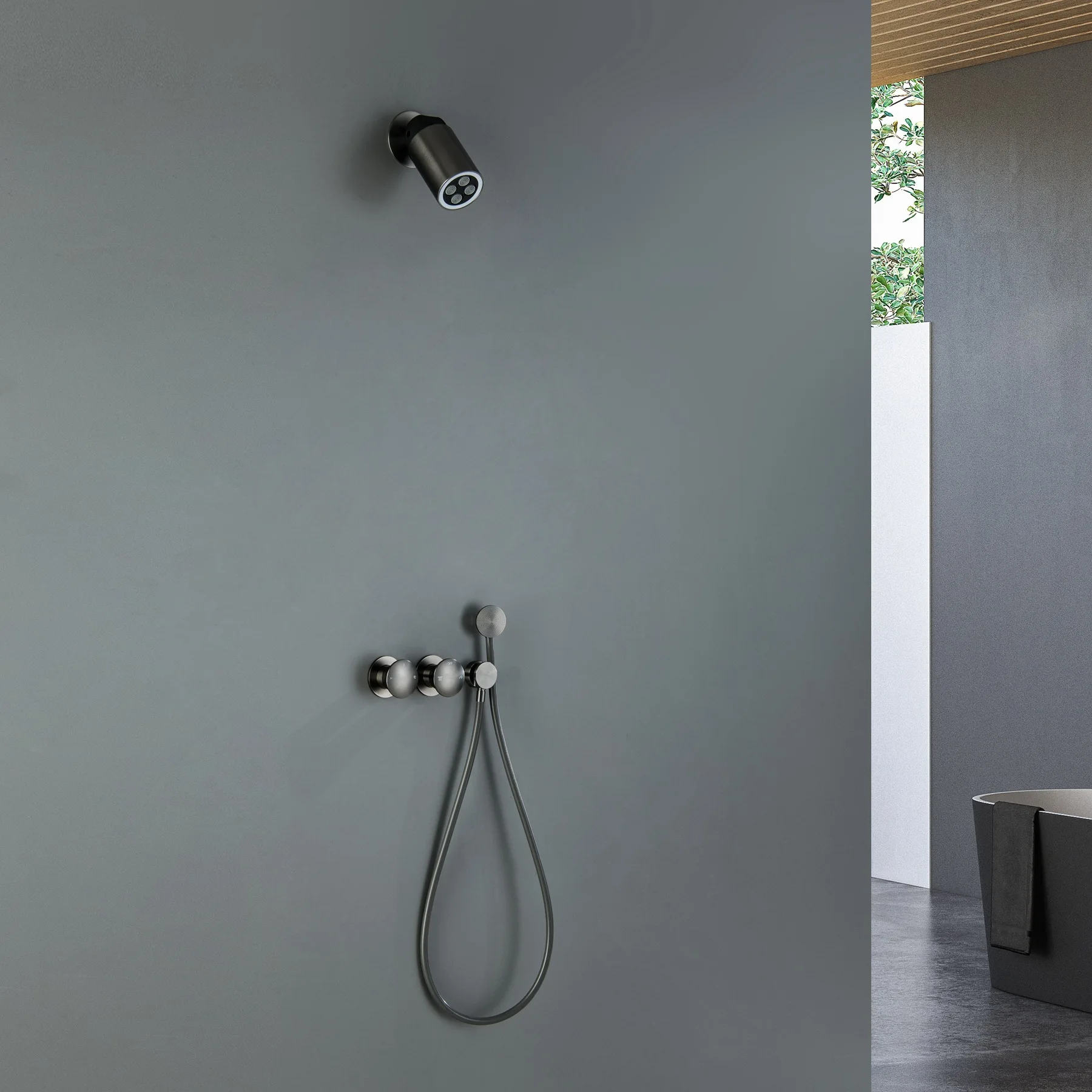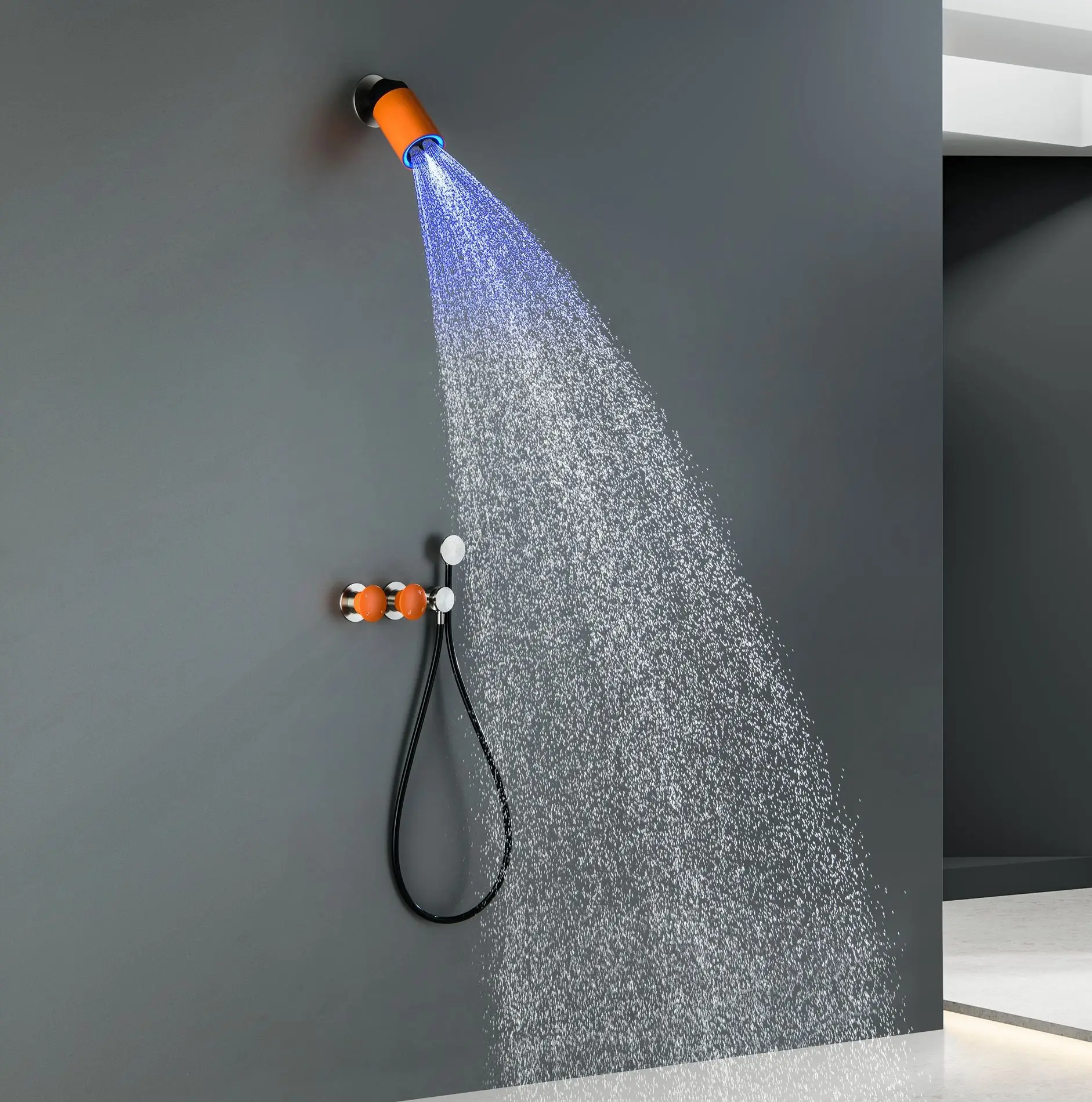 Ensemble de douche à projecteur LED, ensemble de robinets de douche noirs muraux, mitigeur de bain et de douche en laiton brossé Total