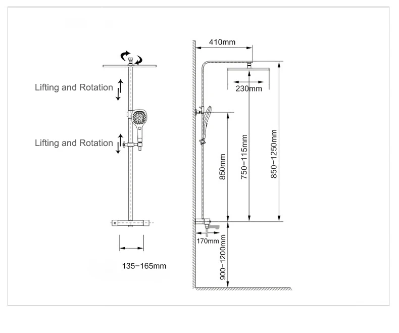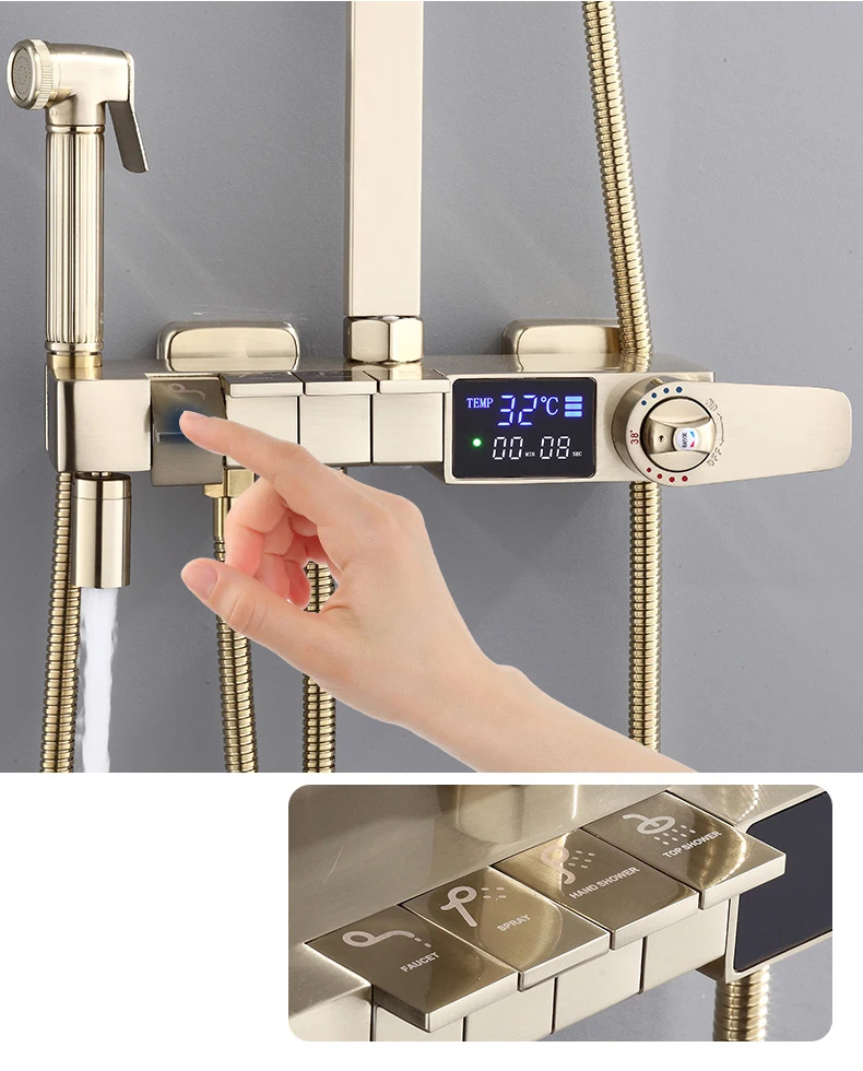 - Expérience de douche multifonctionnelle : avec un robinet thermostatique et plusieurs modes de pulvérisation (pluie, jet et massage), ce système de douche offre une expérience de douche inégalée, permettant aux utilisateurs de personnaliser la température et la pression de leur eau à leur guise.