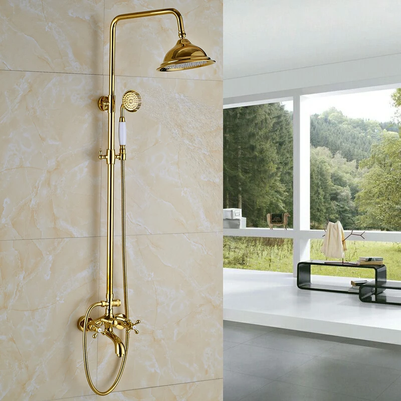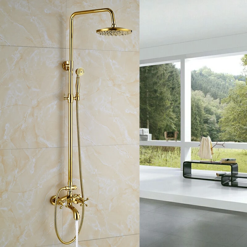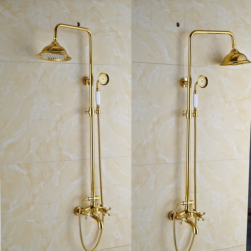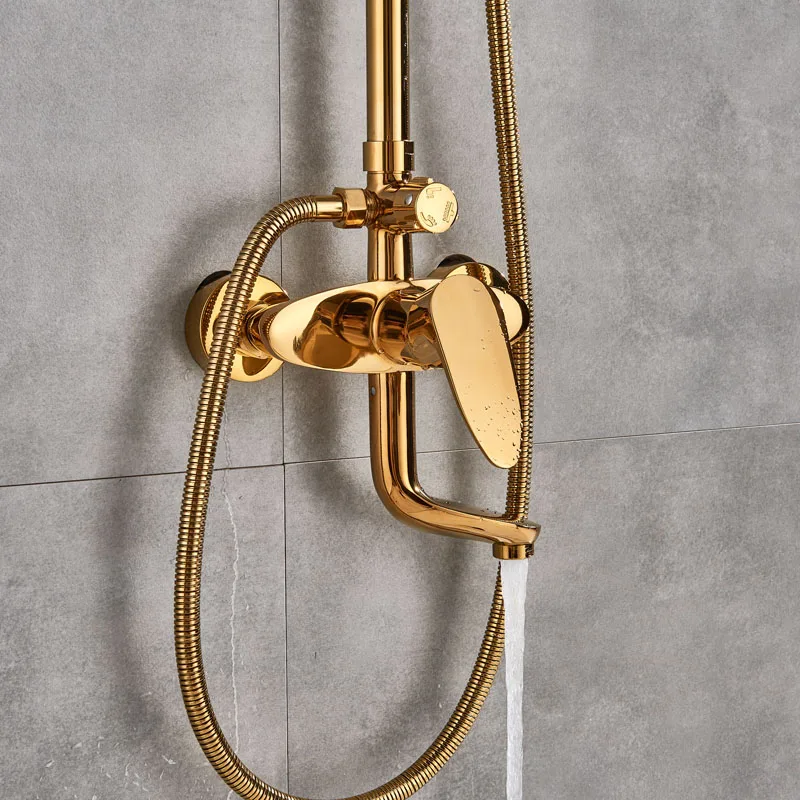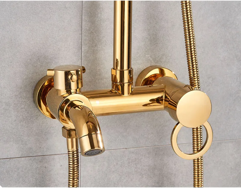 Ensemble de douche doré robinet mitigeur 3 voies 8 « mitigeur de douche pluie avec douchette bec cascade système de douche de bain