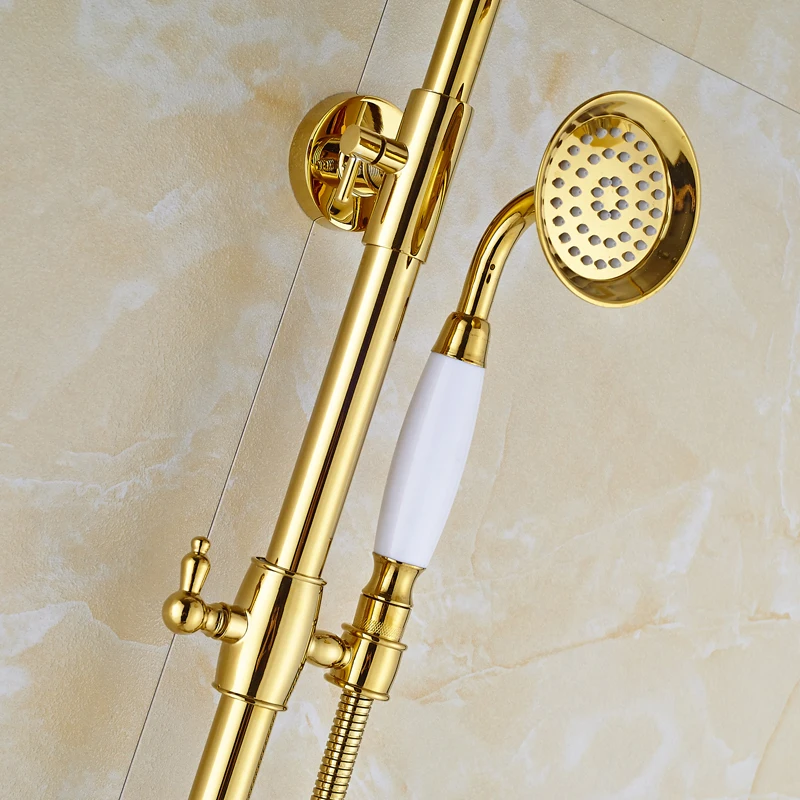Ensemble de douche doré robinet mitigeur 3 voies 8 "mitigeur de douche pluie avec douchette bec cascade système de douche de bain