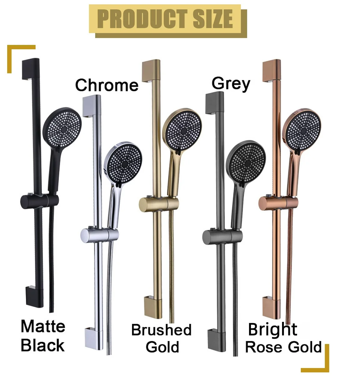Ensemble de douche en or Rose brillant, accessoires de salle de bains, pomme de douche, montage mural, curseur réglable, Rail de douche, montage coulissant