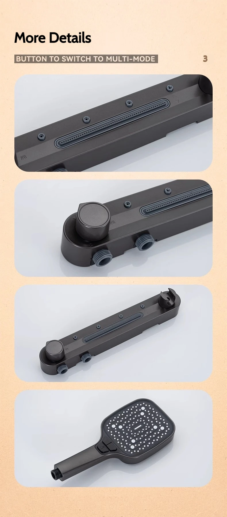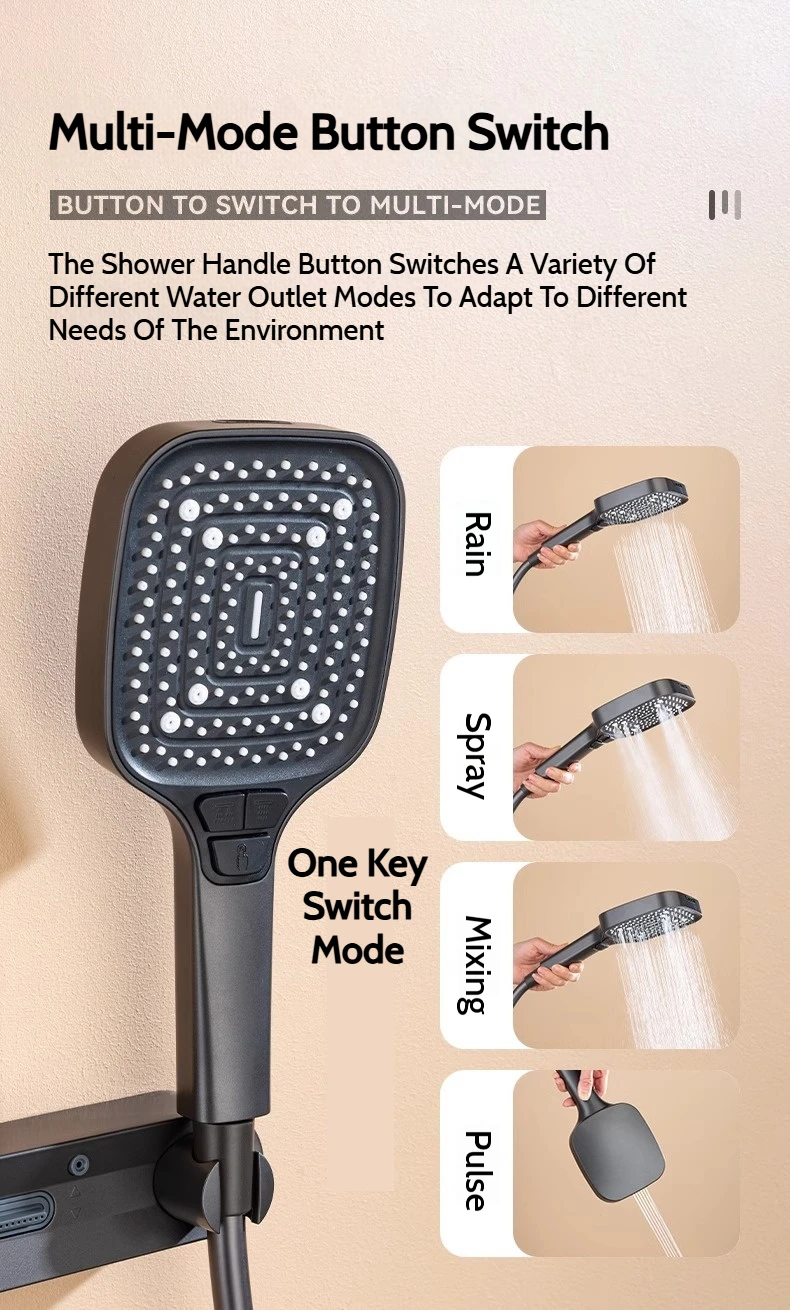 - Handheld shower functions: Rain mode / Mix mode / Spray mode / Water column mode