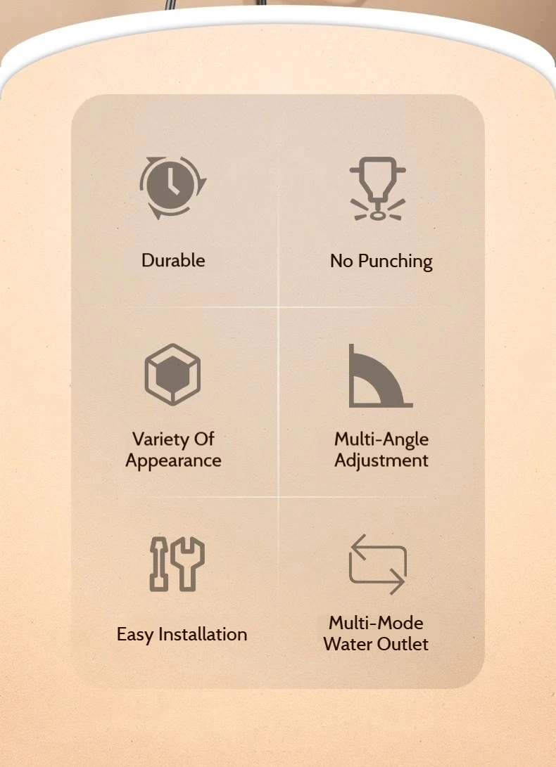 ✿ Caractéristiques :Angle de sortie réglable/plusieurs modes d’eau réglables/une conception divisée simple permet d’économiser de l’espace