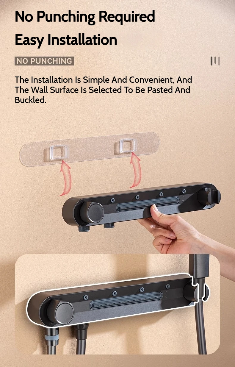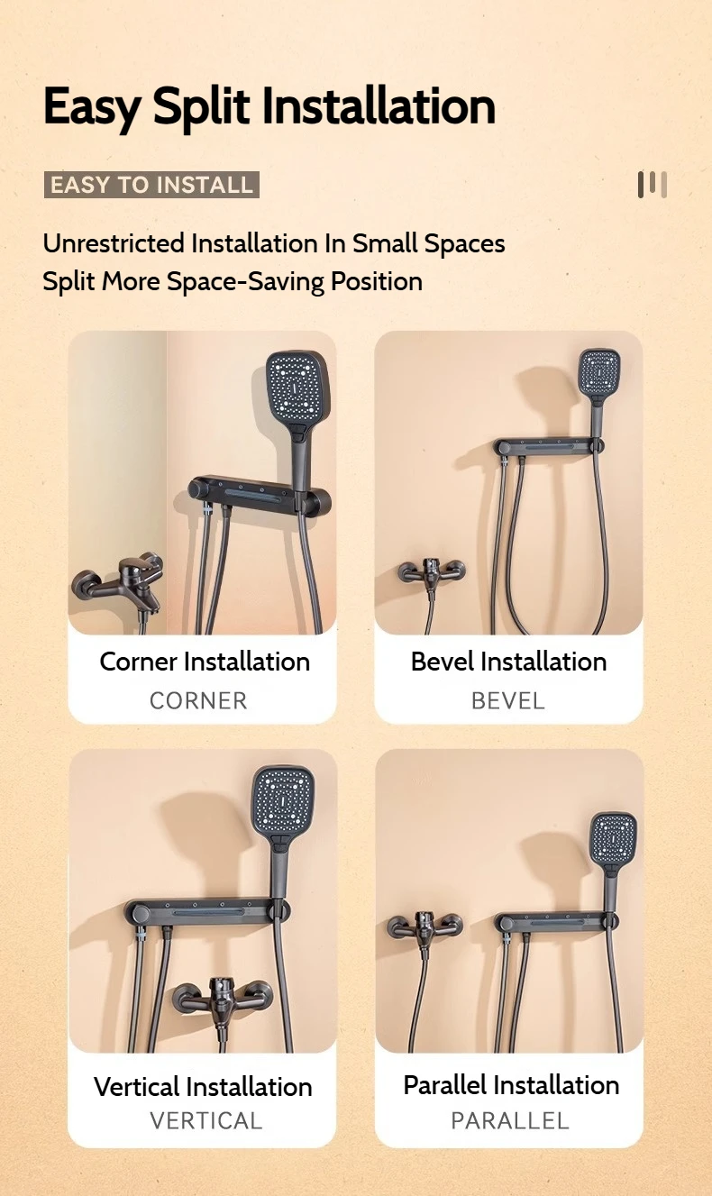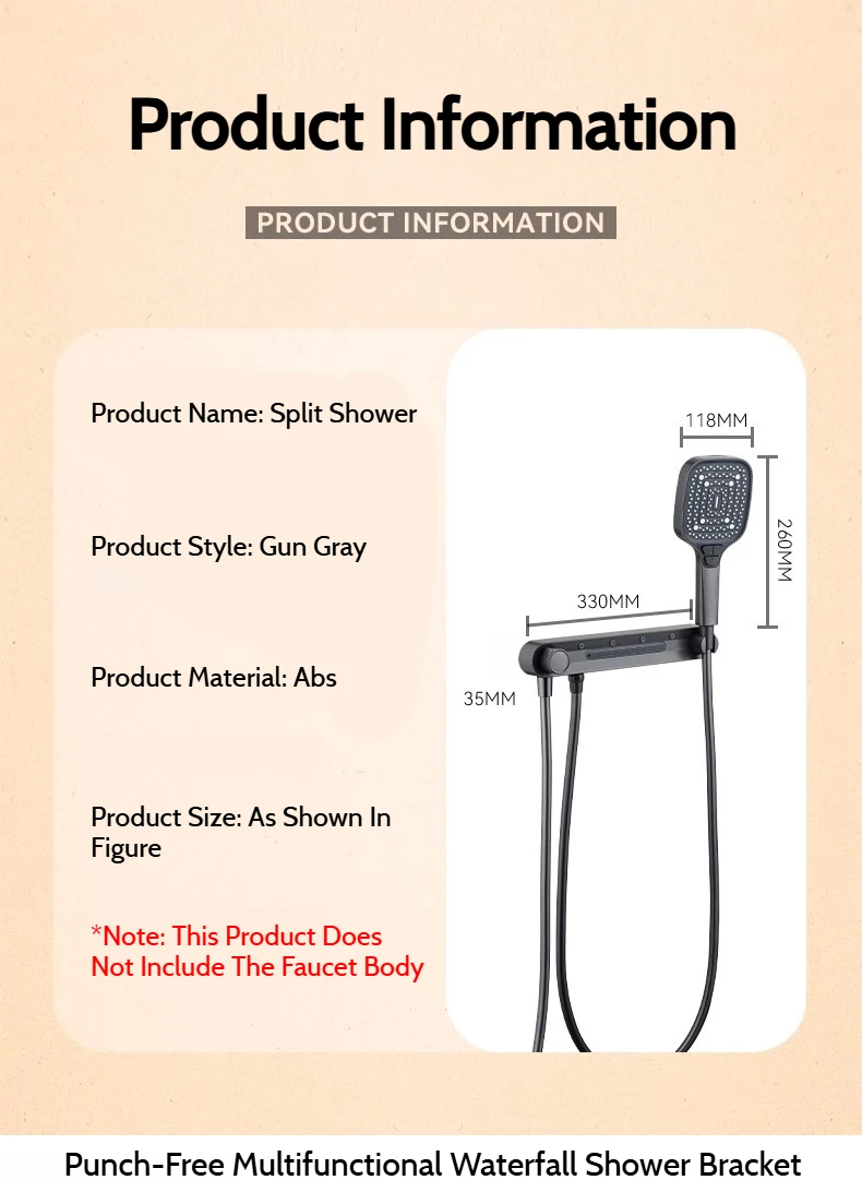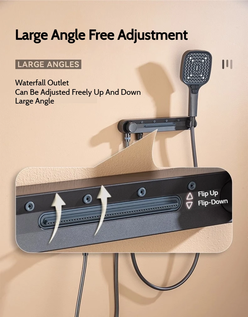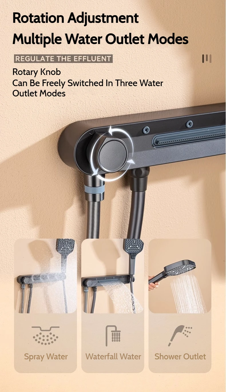 - Wall-mounted water flow distributor functions: Spray mode / Waterfall mode / Handheld shower mode