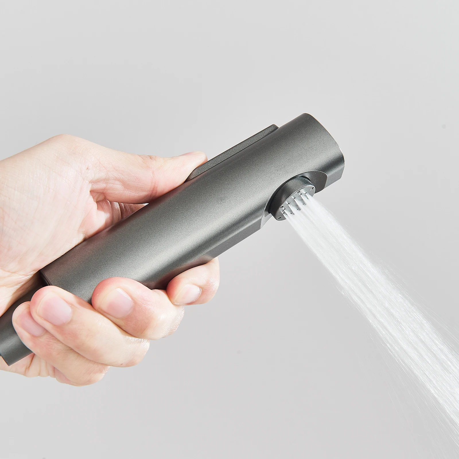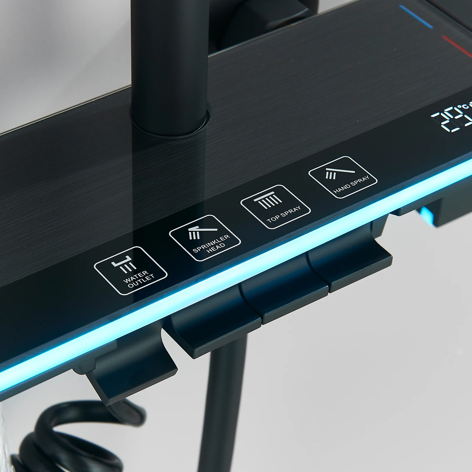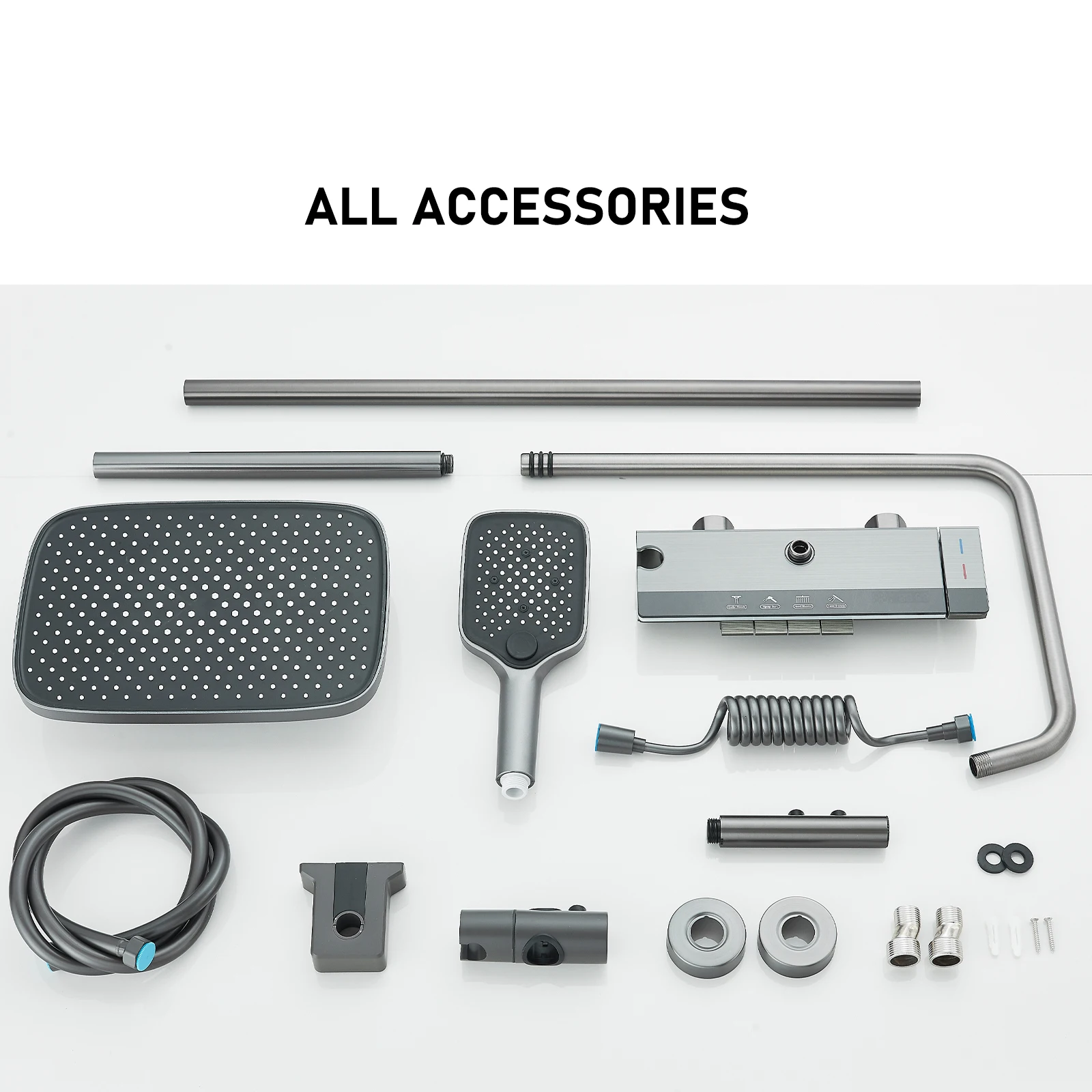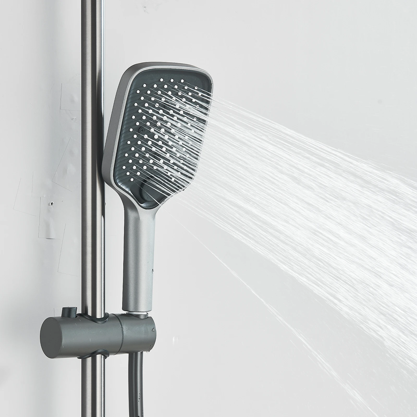 Ensemble de douche gris, système de douche à affichage numérique intelligent à quatre fonctions, ensemble de robinets de douche à clé de Piano mural pressurisé à pluie