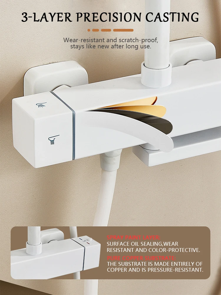 Faites l’expérience d’un contrôle précis de la température de l’eau avec notre ensemble de douche thermostatique, garantissant une douche confortable à chaque fois.