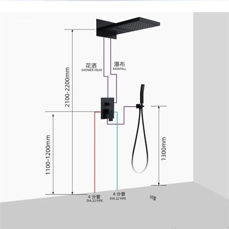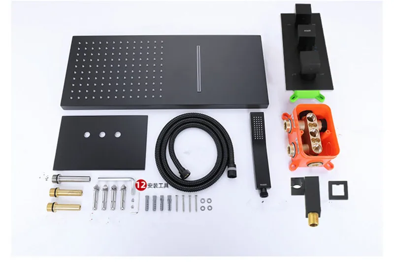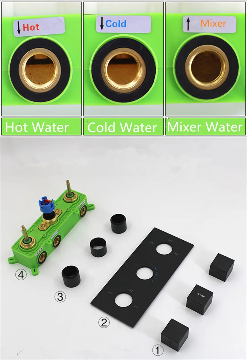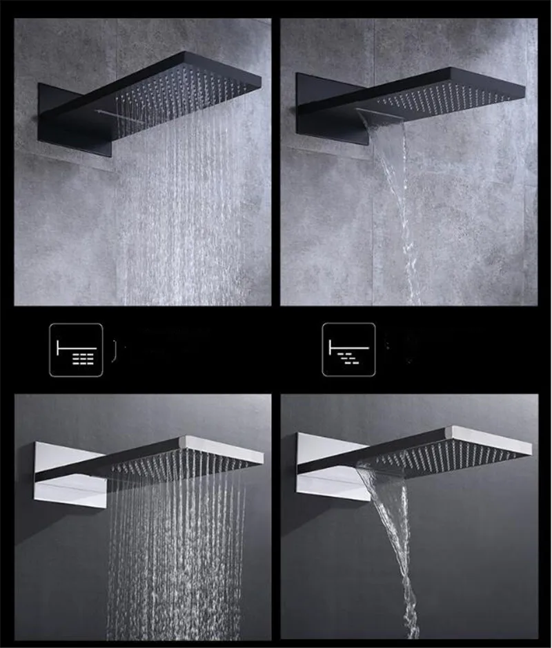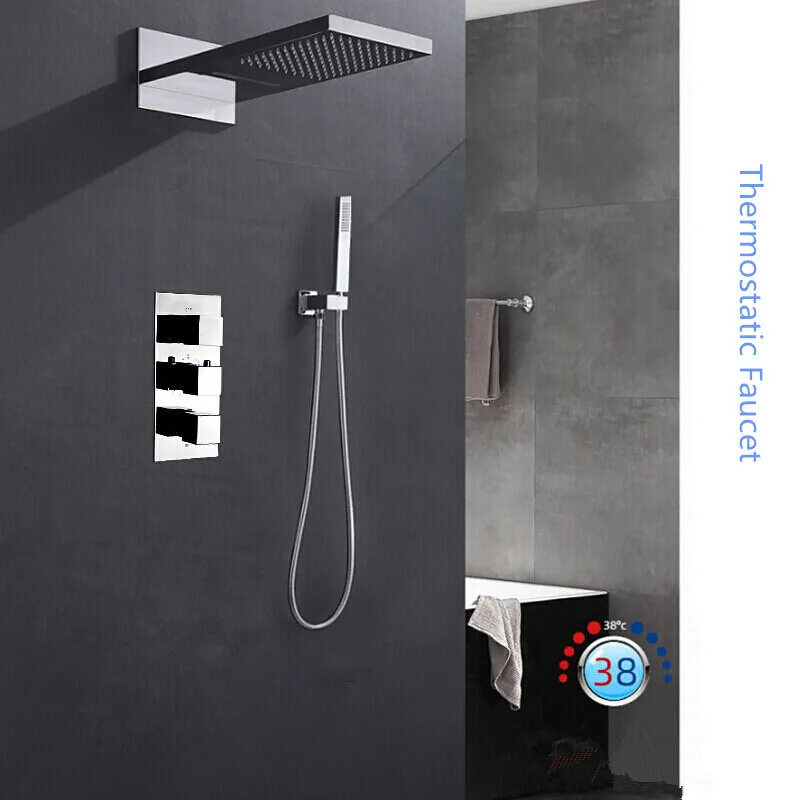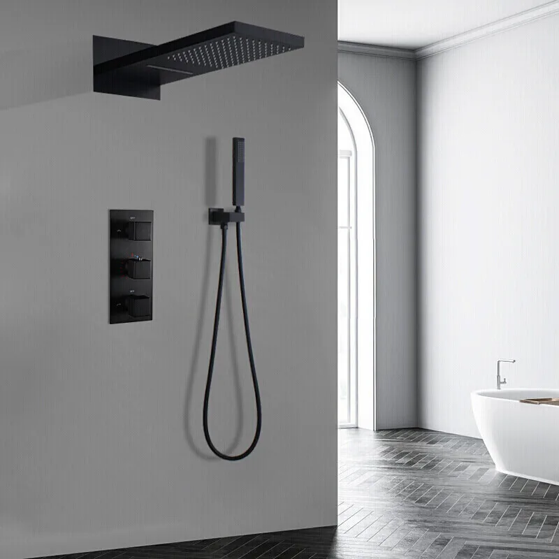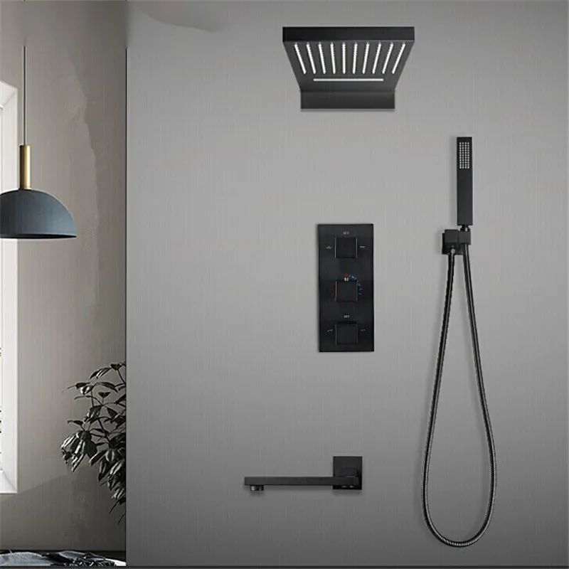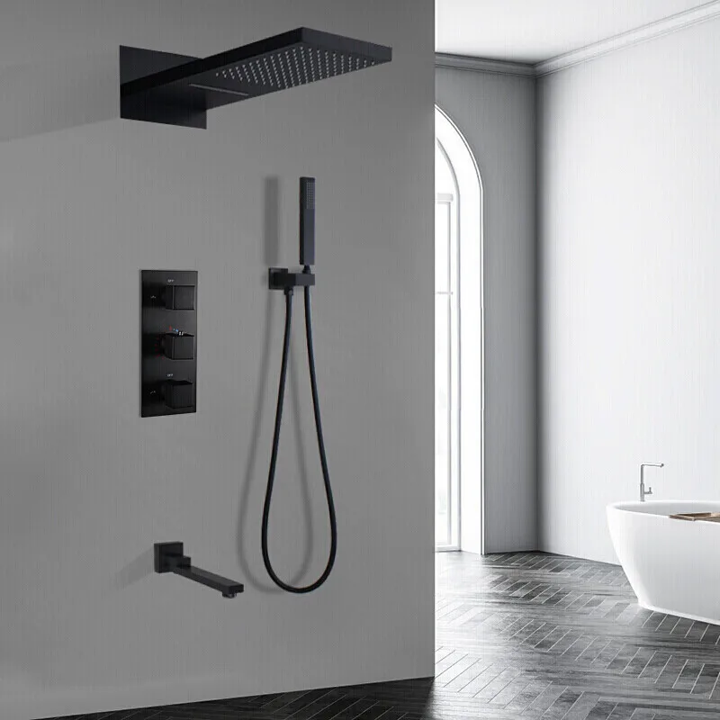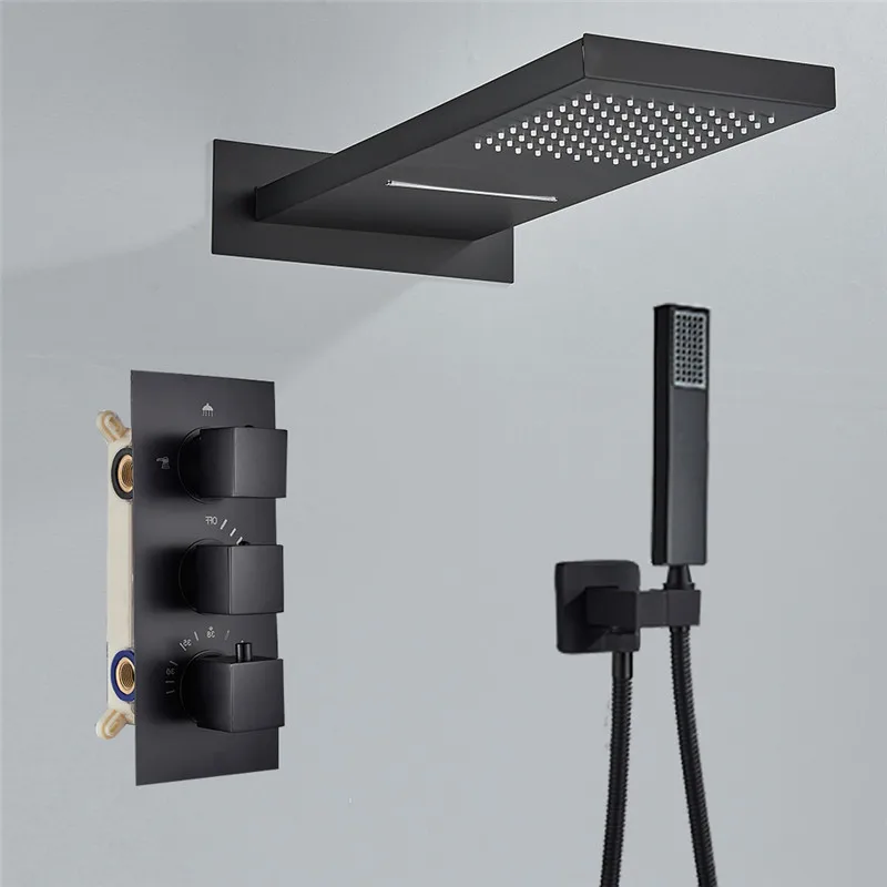 Robinet de douche de salle de bain thermostatique dans le mur Ensemble de robinet de bain et de douche en or brossé Mitigeur thermostatique Bain et douche à effet pluie