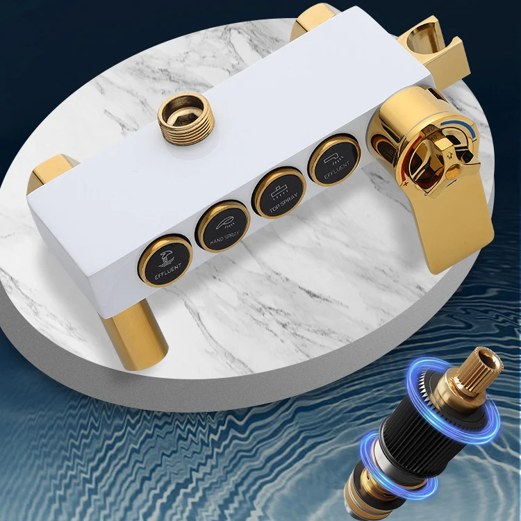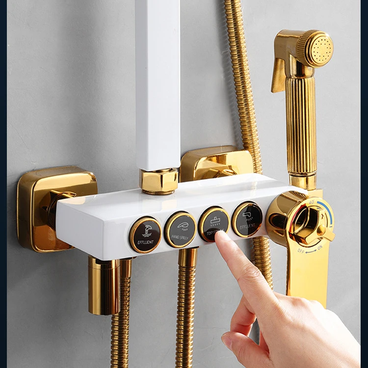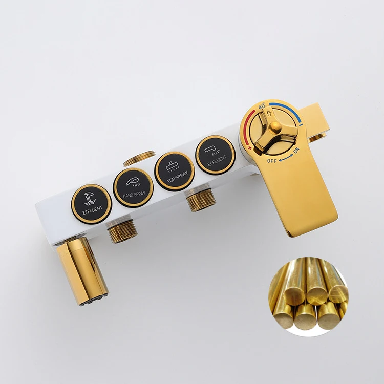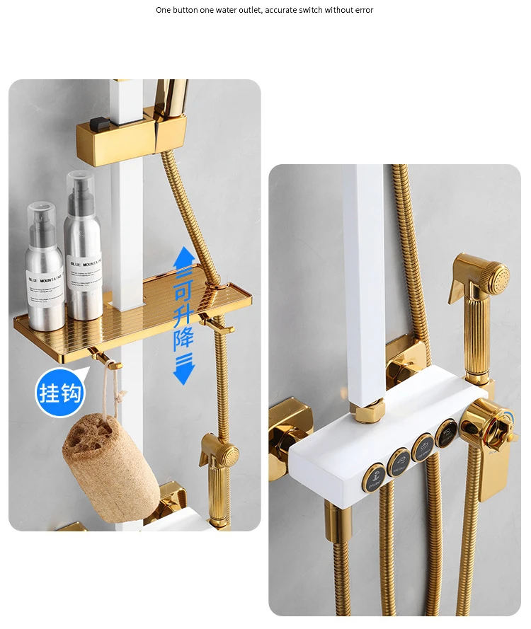 【 4 sorties d’eau 】Les touches du piano sont contrôlées indépendamment, le jet supérieur/à main/bec de bidet/robinet de baignoire, chaque sortie d’eau a un interrupteur correspondant, les fonctions clés sont clairement indiquées (4 sorties d’eau ne peuvent pas fonctionner en même temps)