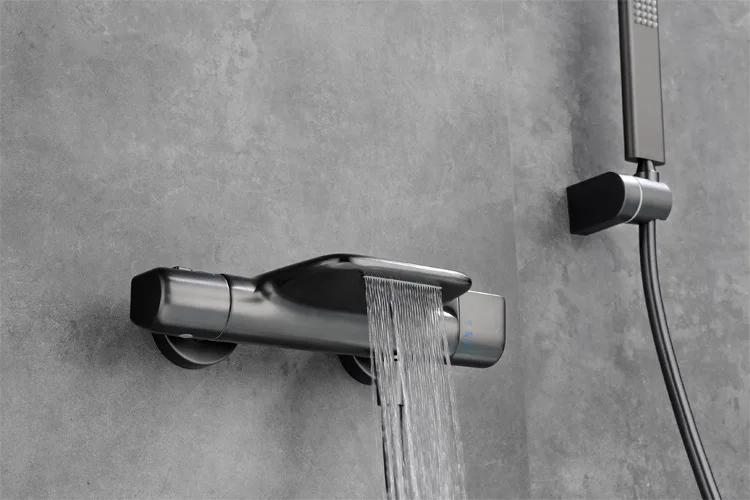 Ensemble de douche thermostatique mural, baignoire, douche, noir, blanc, cascade, bain et douche, robinet de centre commercial, laiton