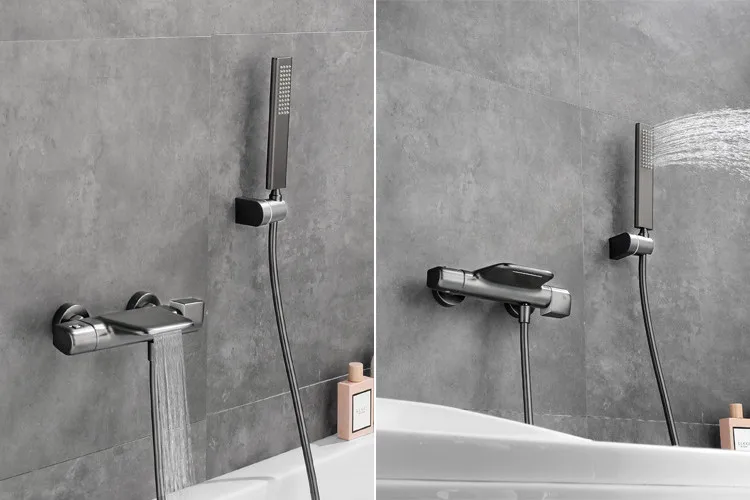 Baignoire thermostatique ensemble de douche mural noir baignoire robinet blanc salle de bain cascade bain et douche mitigeur laiton