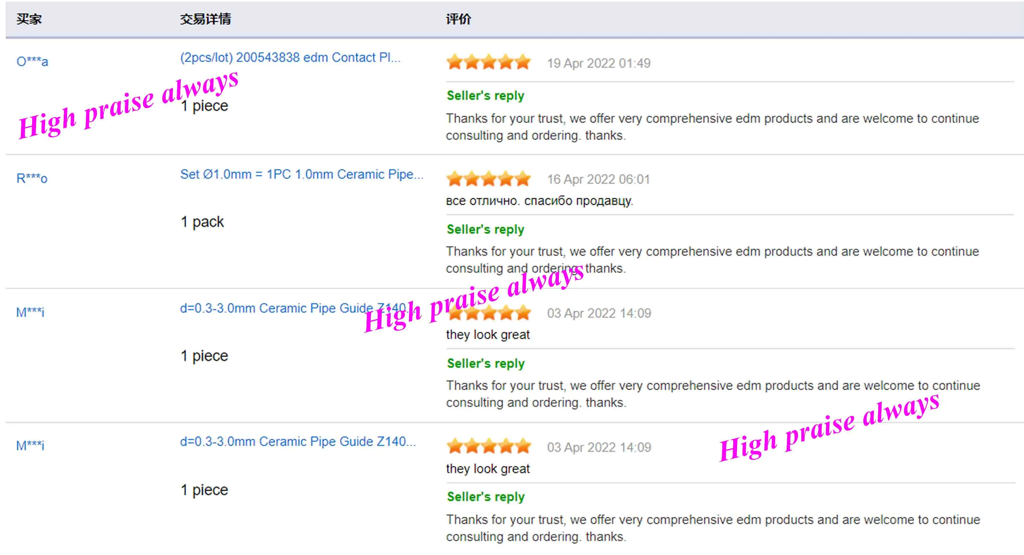 Depuis votre retour est très important au développement de notre entreprise, nous invites sincèrement que vous laisser des commentaires positifs pour nous si vous êtes satisfait de notre produit et de service.