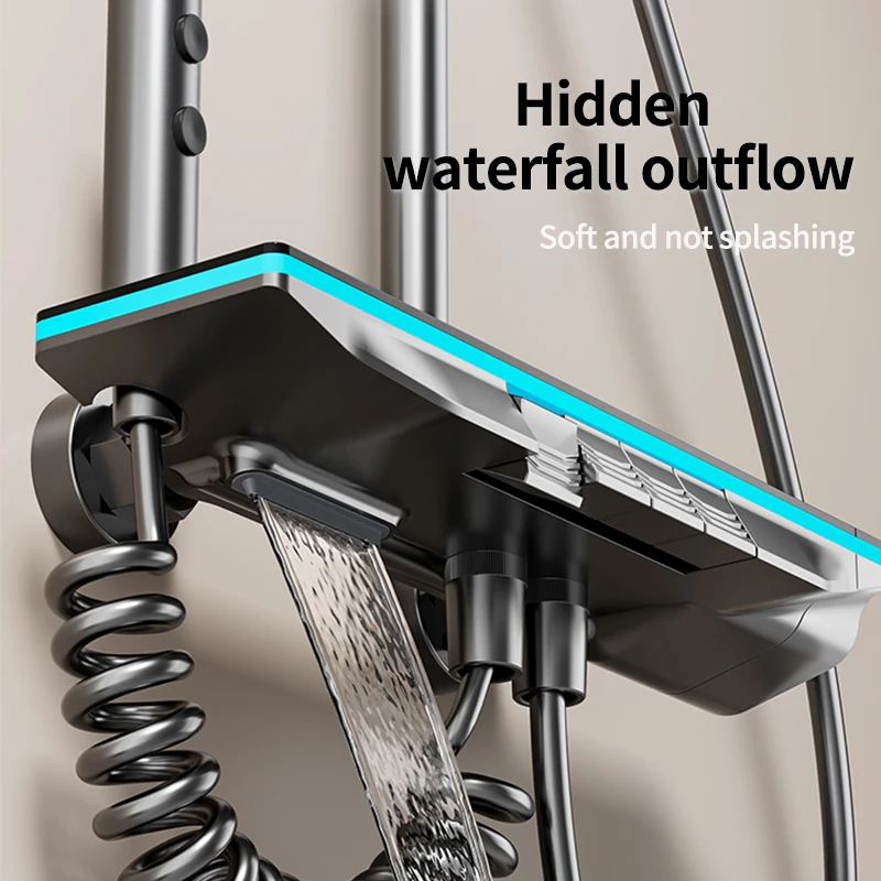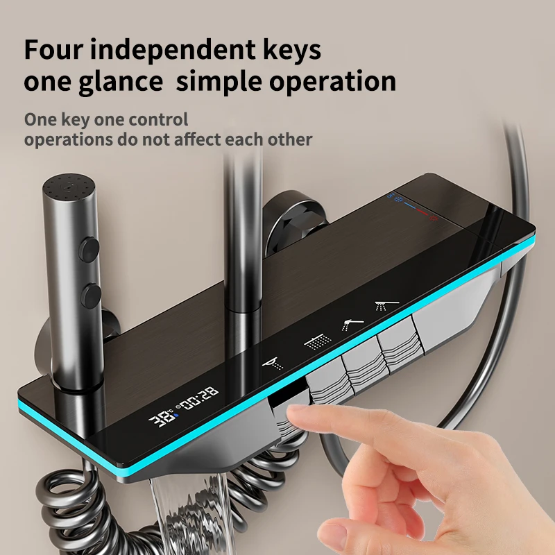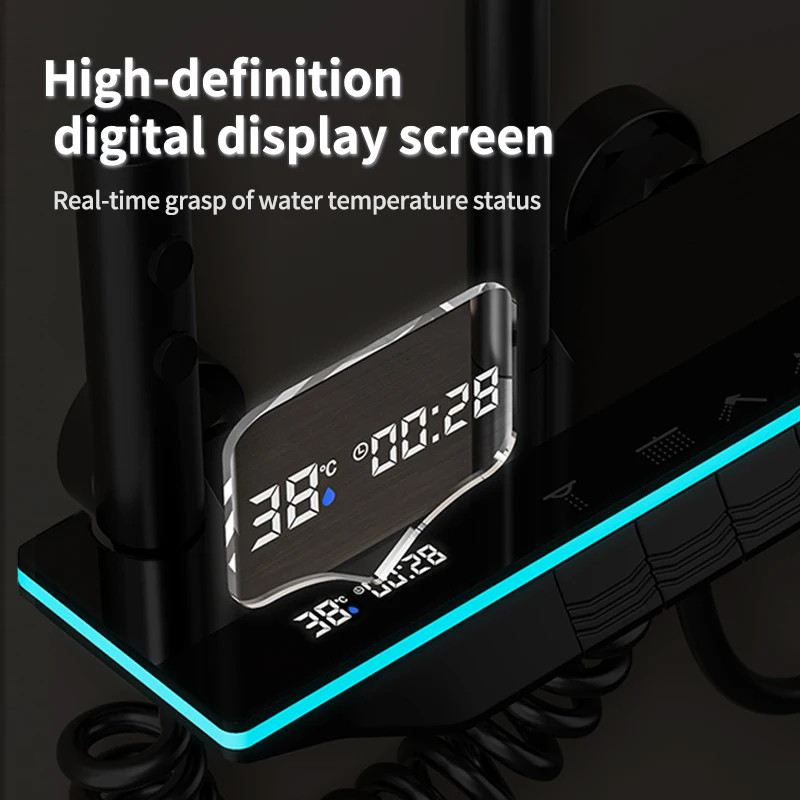 Ensemble de pomme de douche avec affichage de température et de pression constantes, conception de clé de piano, douche domestique, pomme de douche de salle de bainEnsemble de pomme de douche avec affichage de température et de pression constantes, conception de clé de piano, douche domestique, pomme de douche de salle de bain