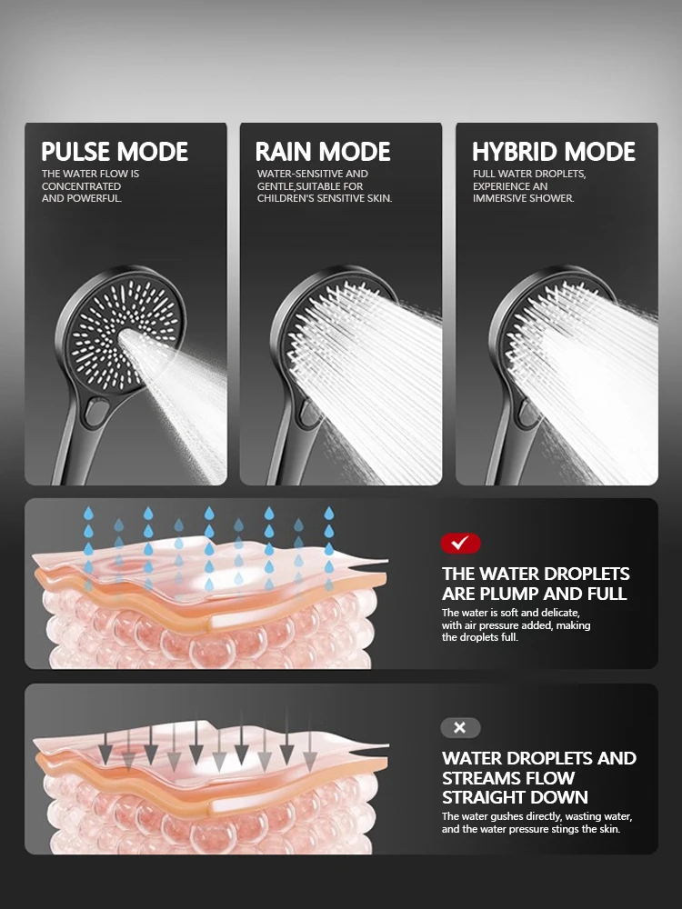 - Water Saving ShowerSet: Adjustable Large Water Yield