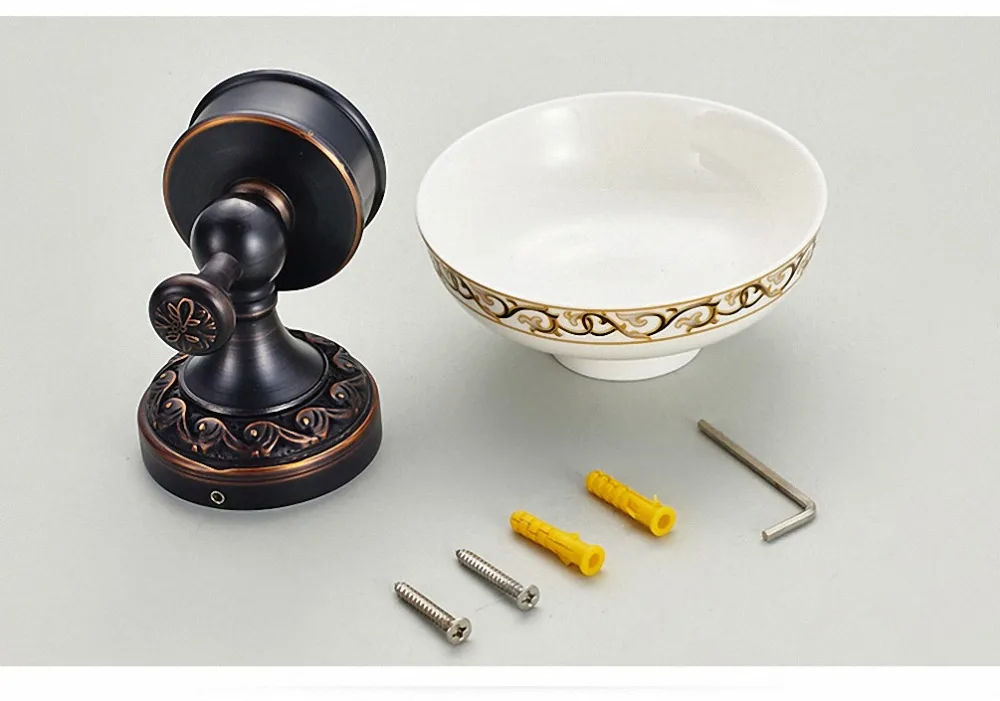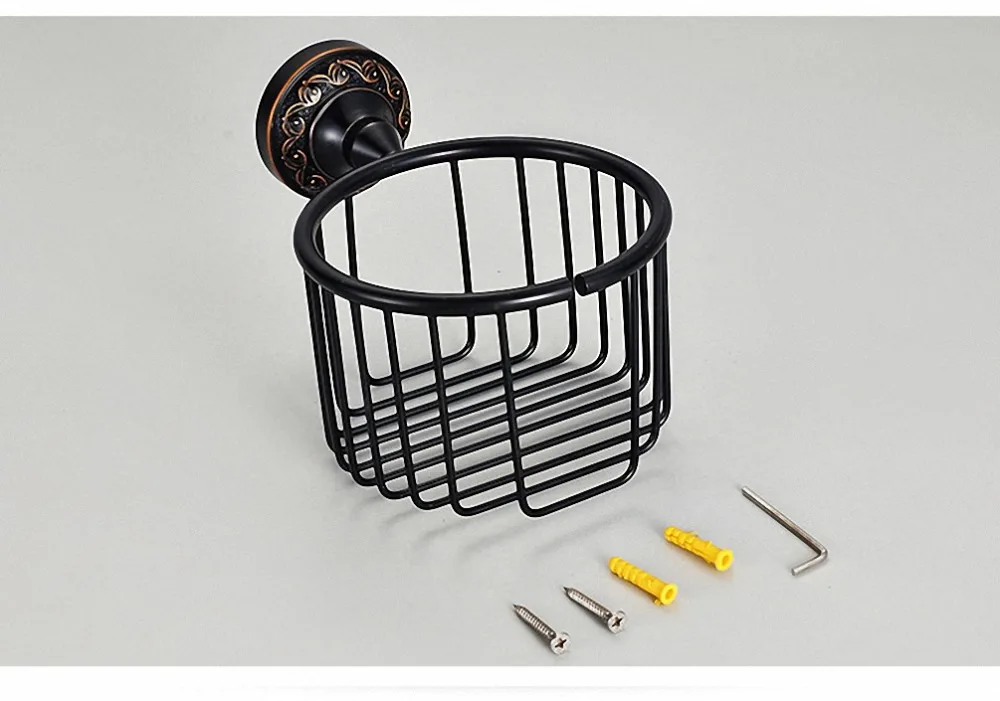 Style européen solide noir matériel de bain mural brosse de toilette porte-serviettes en papier support accessoires de salle de bain