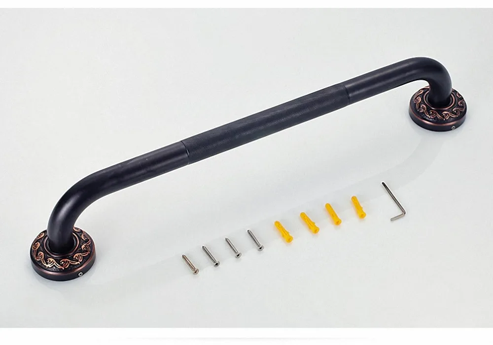 Barre d’appui pour baignoire de salle de bain, main courante de douche de 45cm de long, soutien à domicile, noir classique, matériau en laiton massif