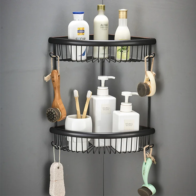 Support de rangement de cuisine, étagère de panier d’angle de douche de salle de bain, métal d’alliage noir classique, antirouille, gain de place, mural