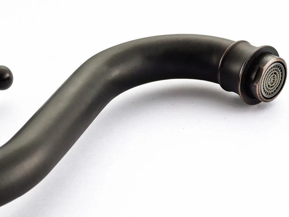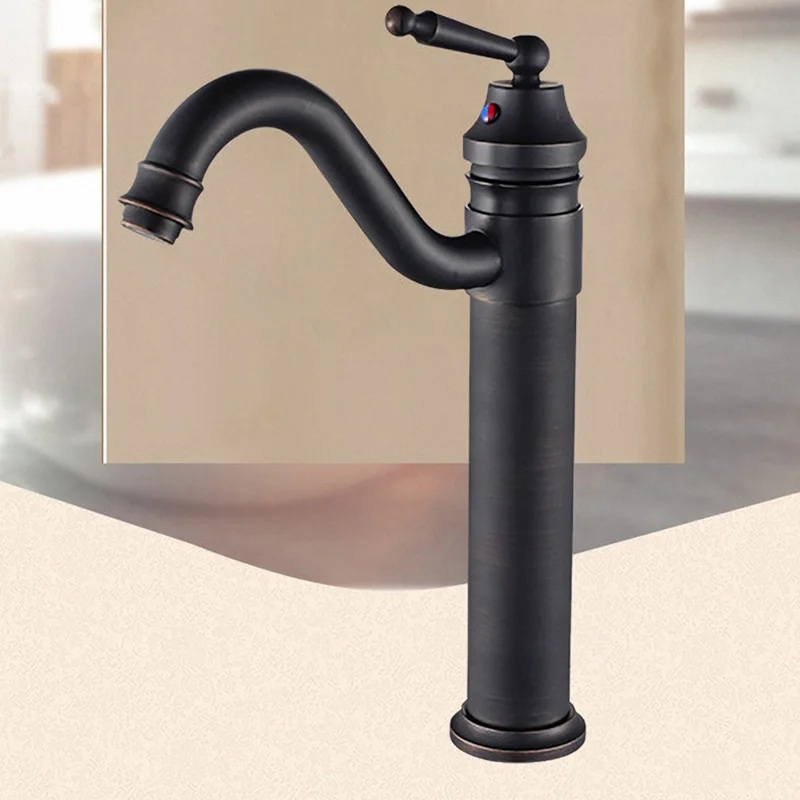 Robinet d’évier de salle de bains, laiton massif, idéal pour hôtel/motel/maison, une poignée, arc élevé, bronze huilé/noir, 2058