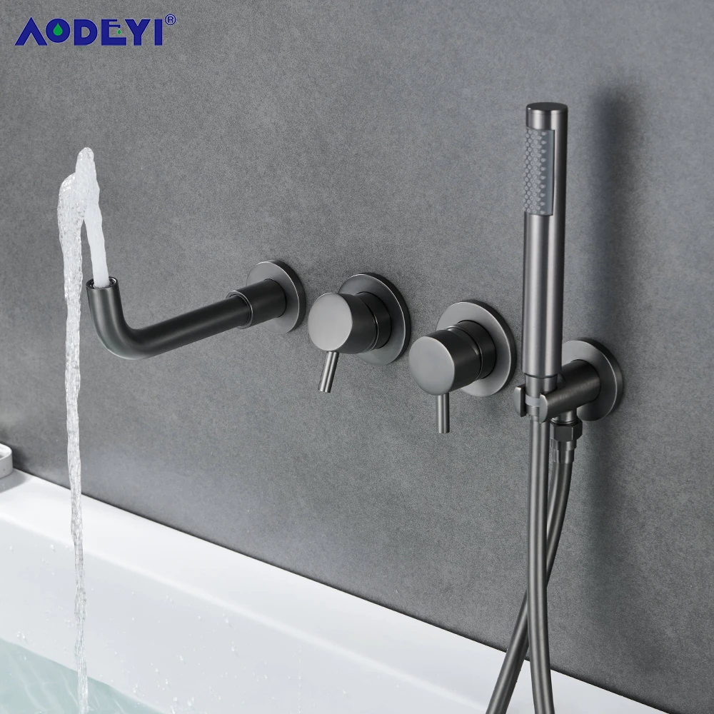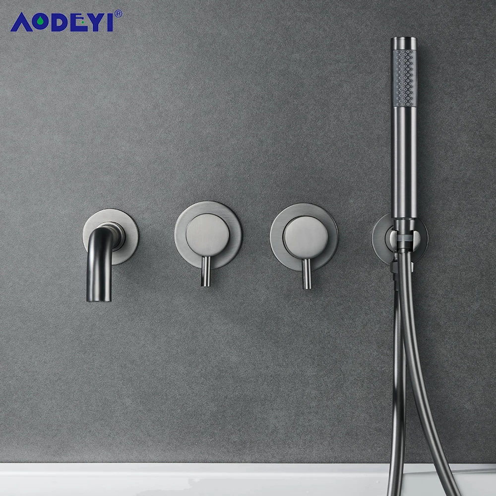 Ensemble de robinets de douche de salle de bains, avec support de Valve de dérivation de douchette à main, bec mural en laiton, mélangeur de baignoire, Double poignée de bain
