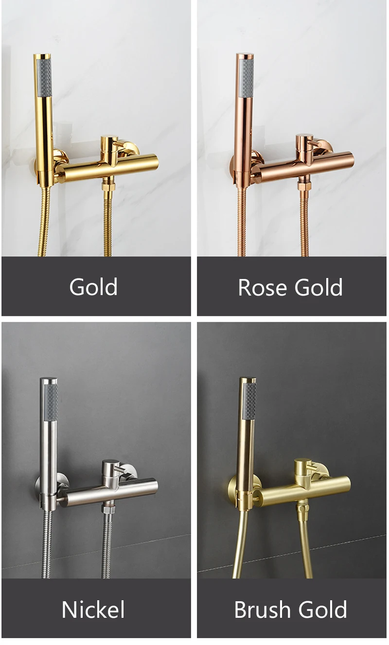 Ensemble de robinets de douche de salle de bains en or Rose, brosse murale, robinet de douche en or, noir, bain froid et chaud et mitigeur de douche